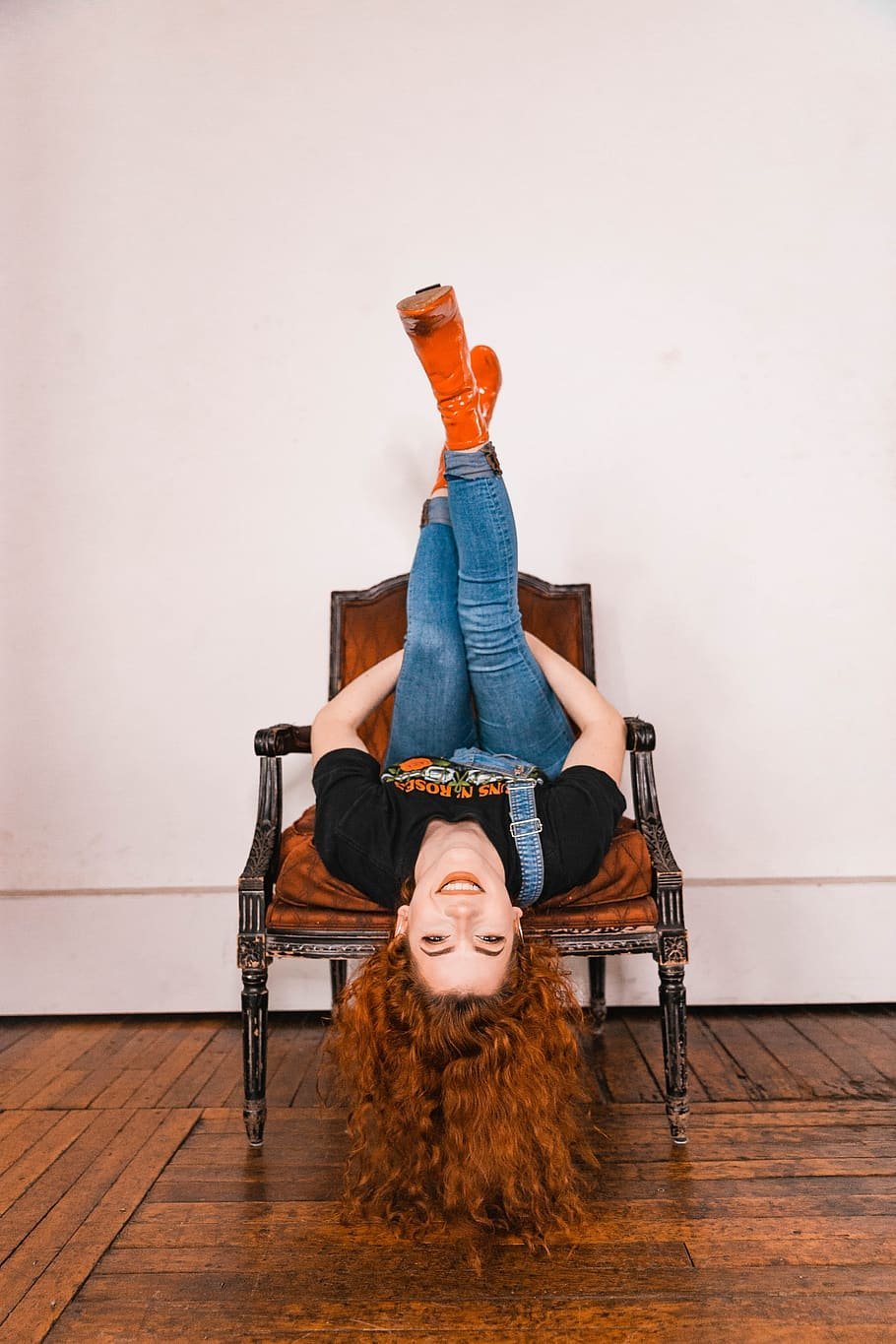 Девушка вверх ногами
