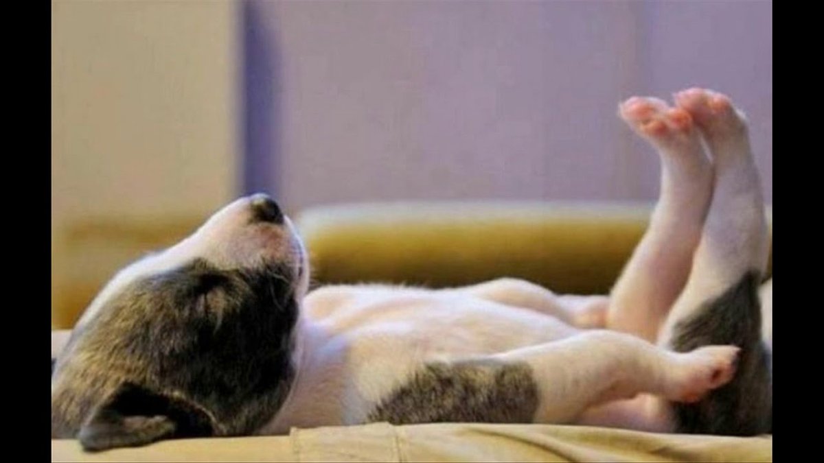 Собака спит вверх ногами