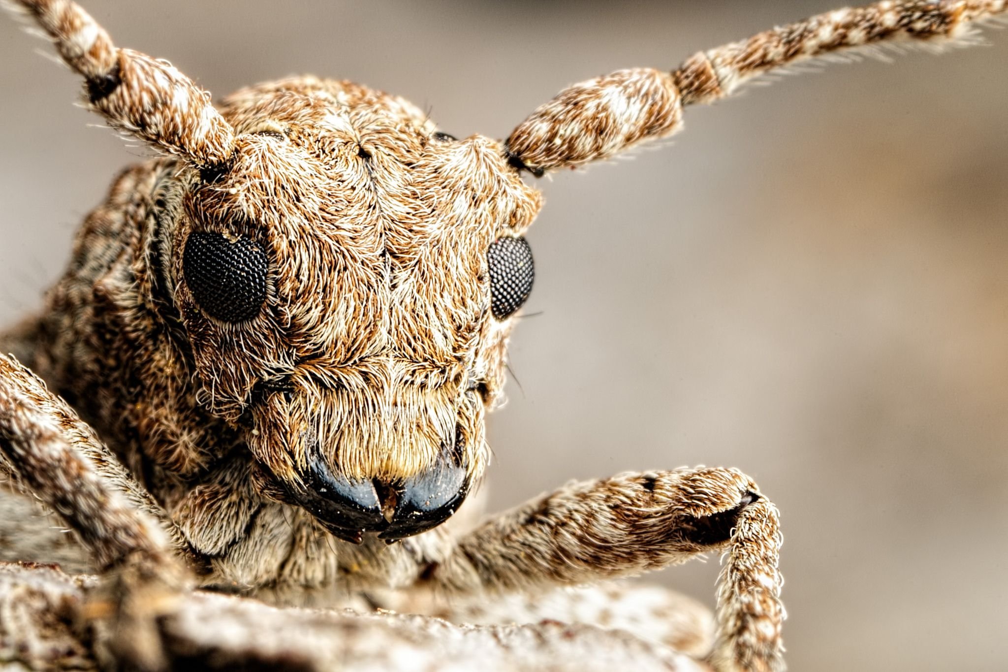 Жук с мохнатыми рогами