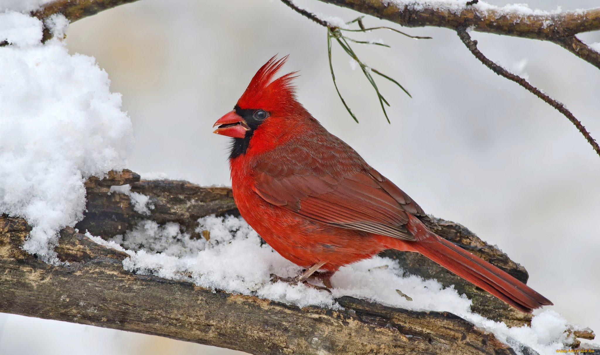 Кардинал с красным хохолком