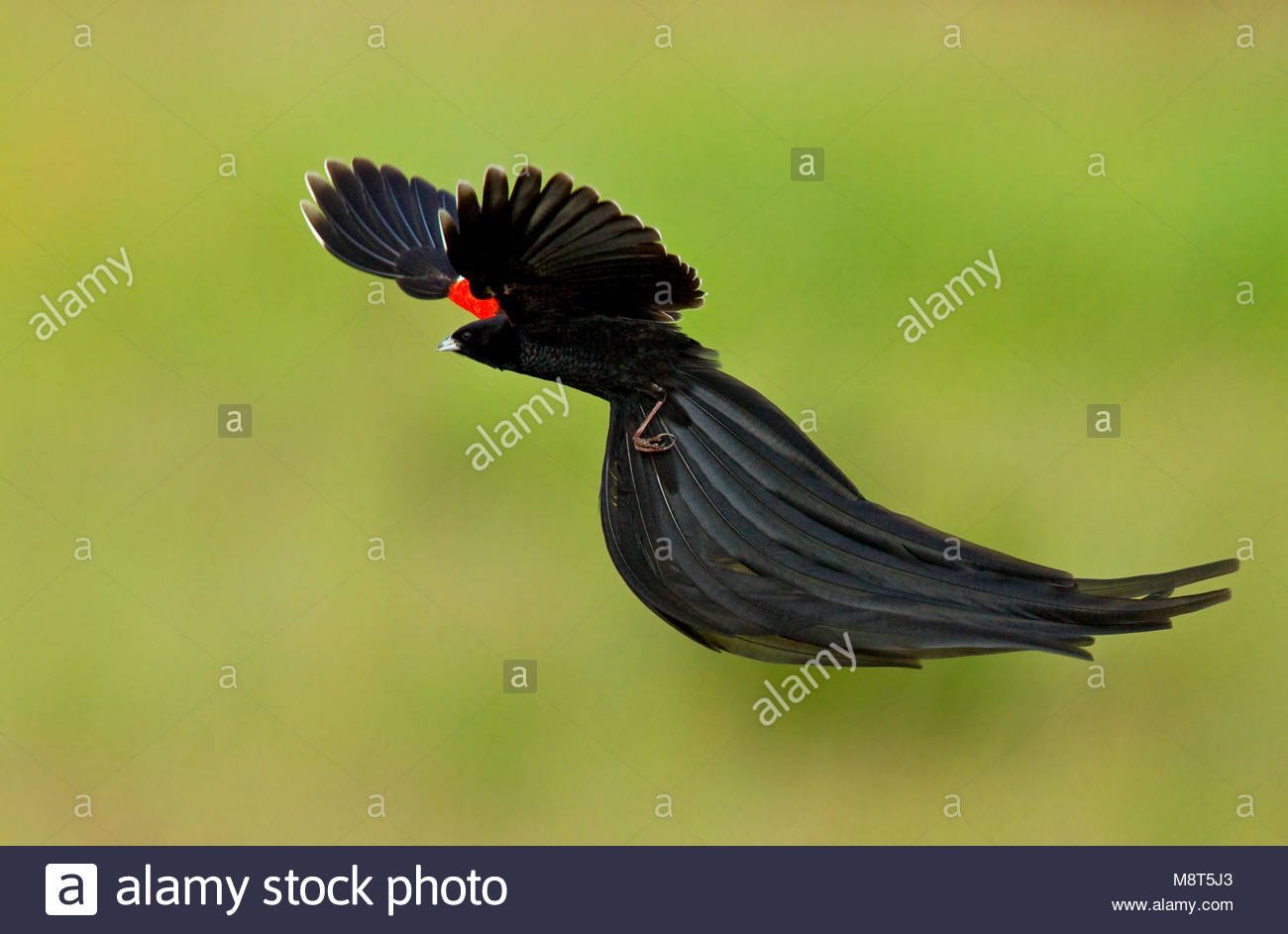 Черная птица с красным хвостом