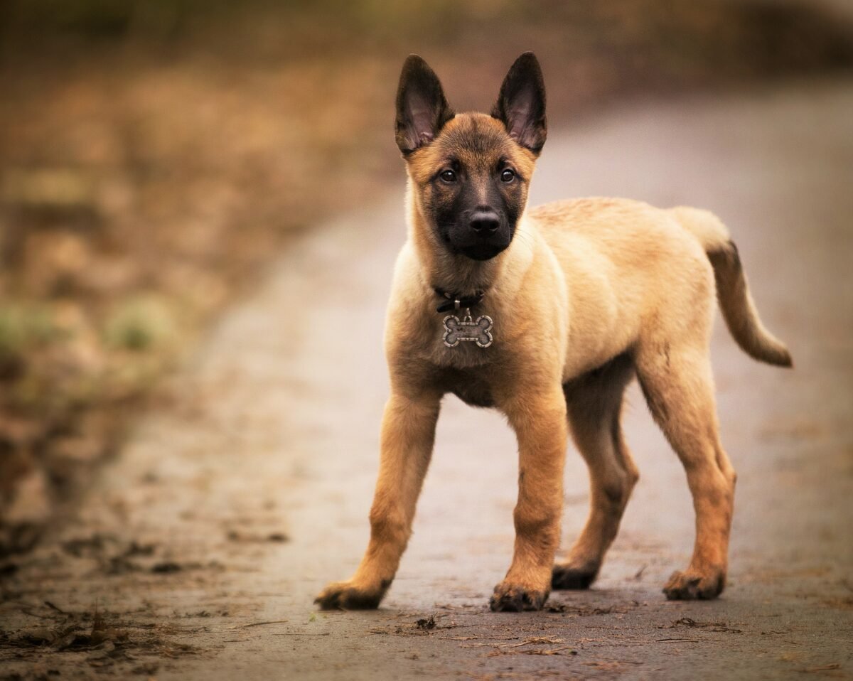 Щенок малинуа с белой грудью и лапками