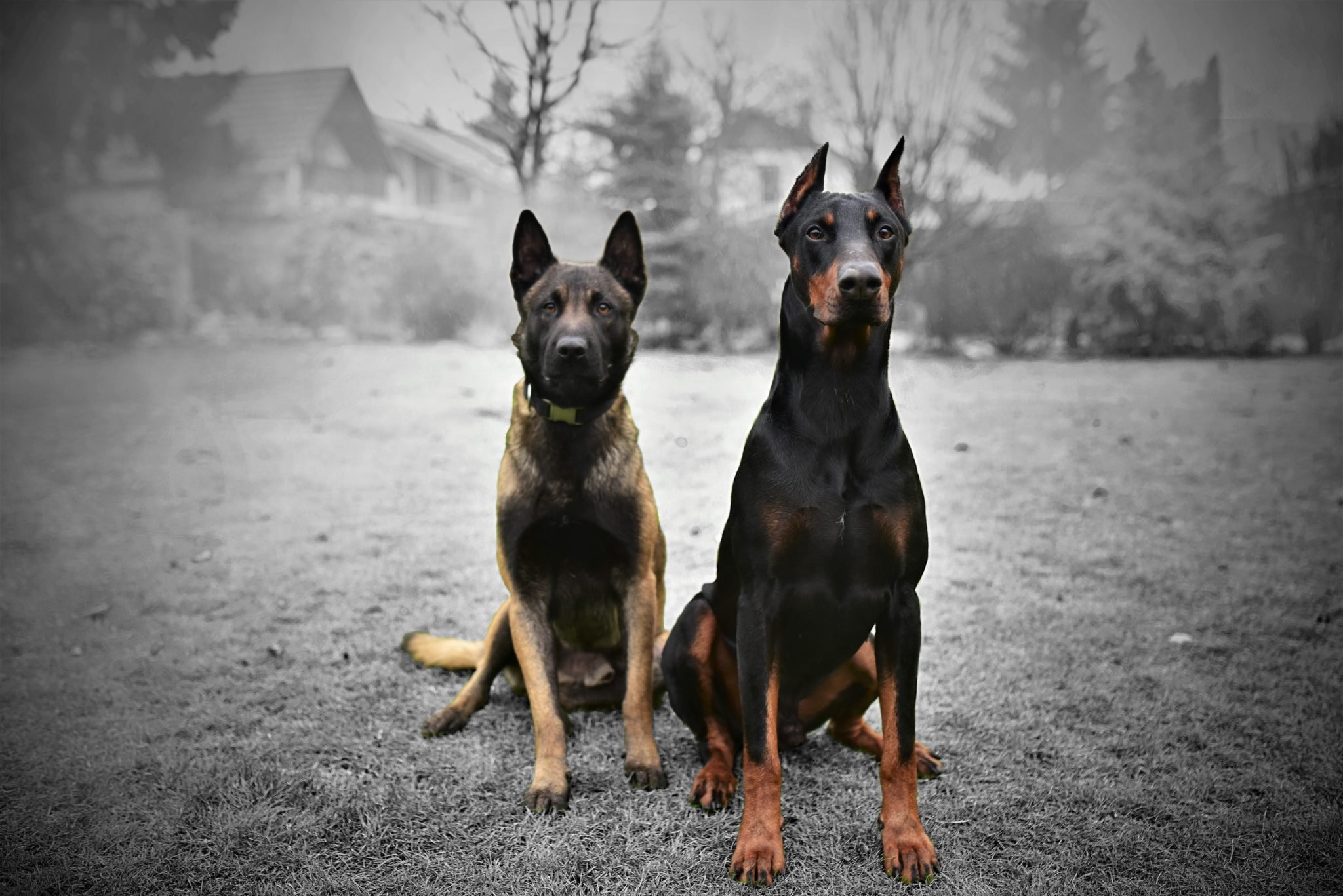 Доберман и немецкая овчарка