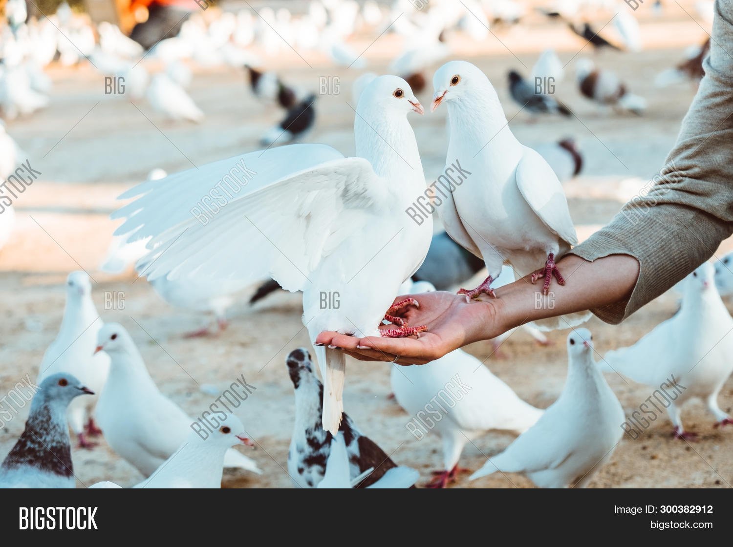 Женские руки с голубями