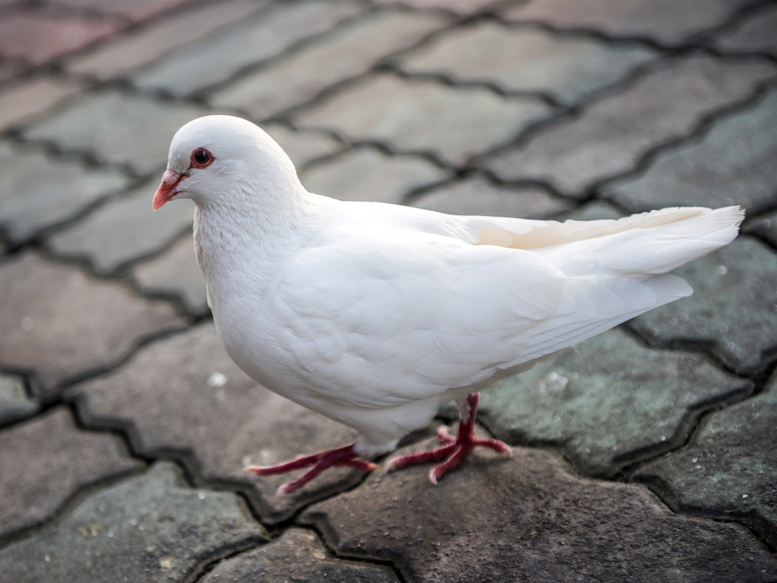 Голубь-альбинос красное
