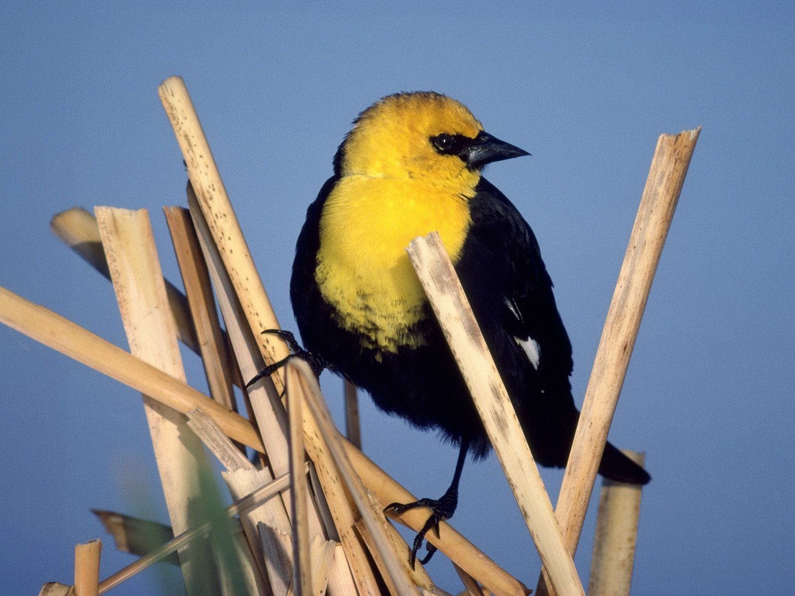 Ярко желтая птица с черными крыльями
