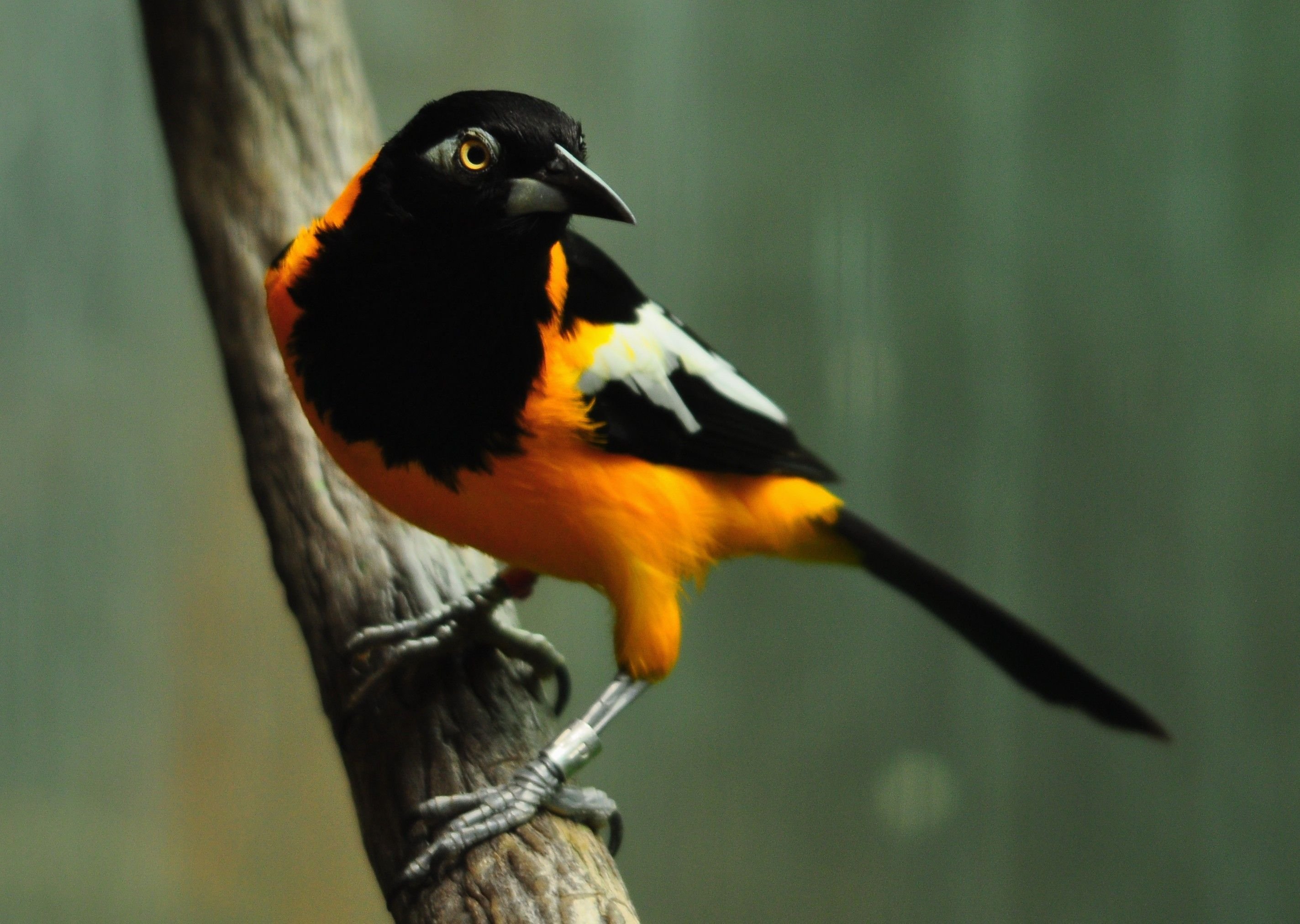 Красно бело черно желтая птица