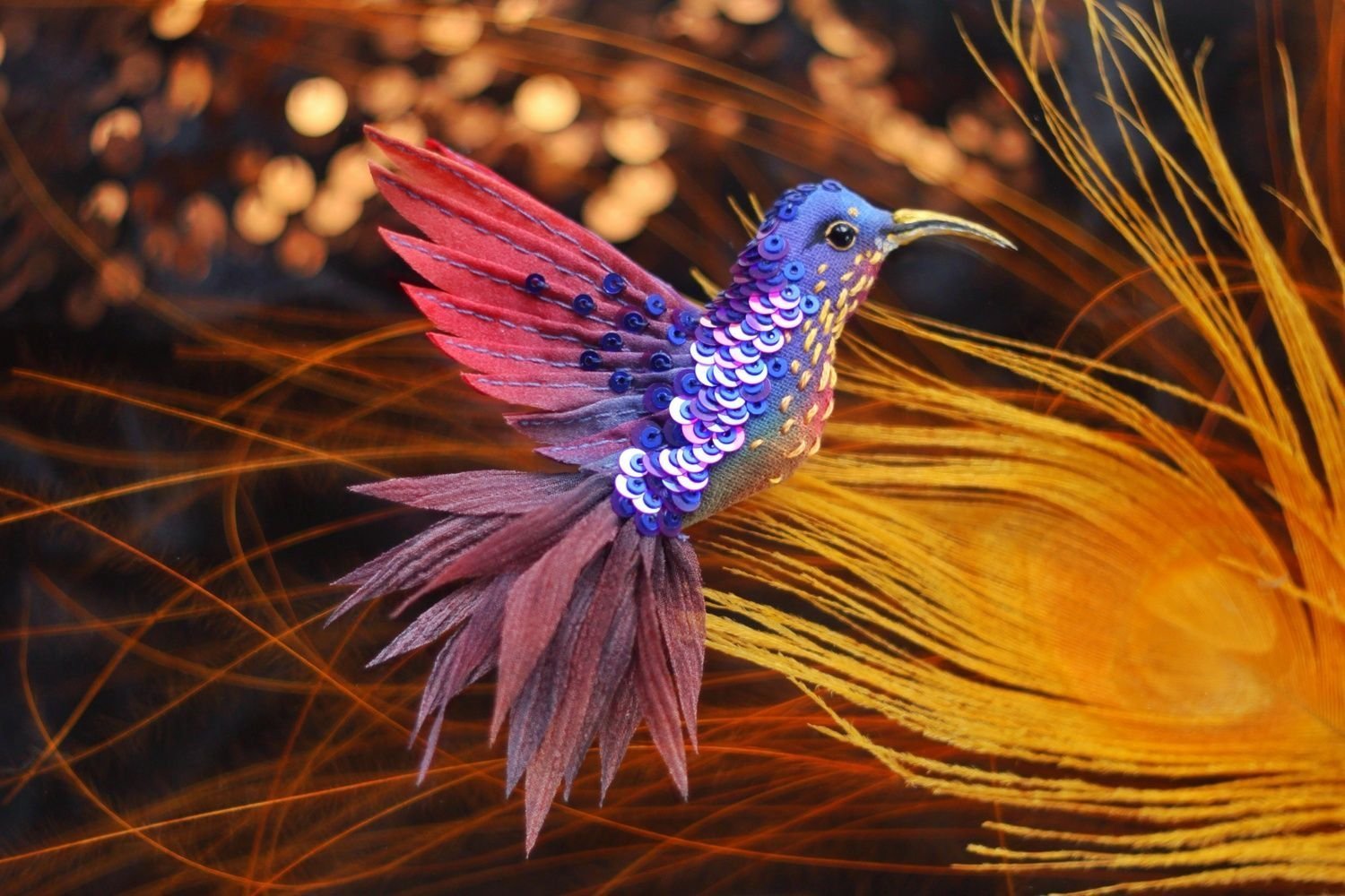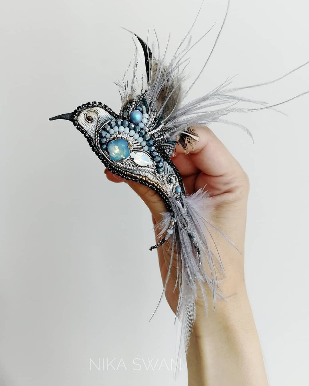 Брошки с перьями и бисером