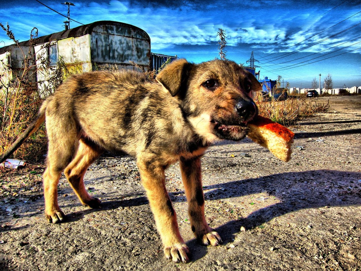 Голодная собака бездомная
