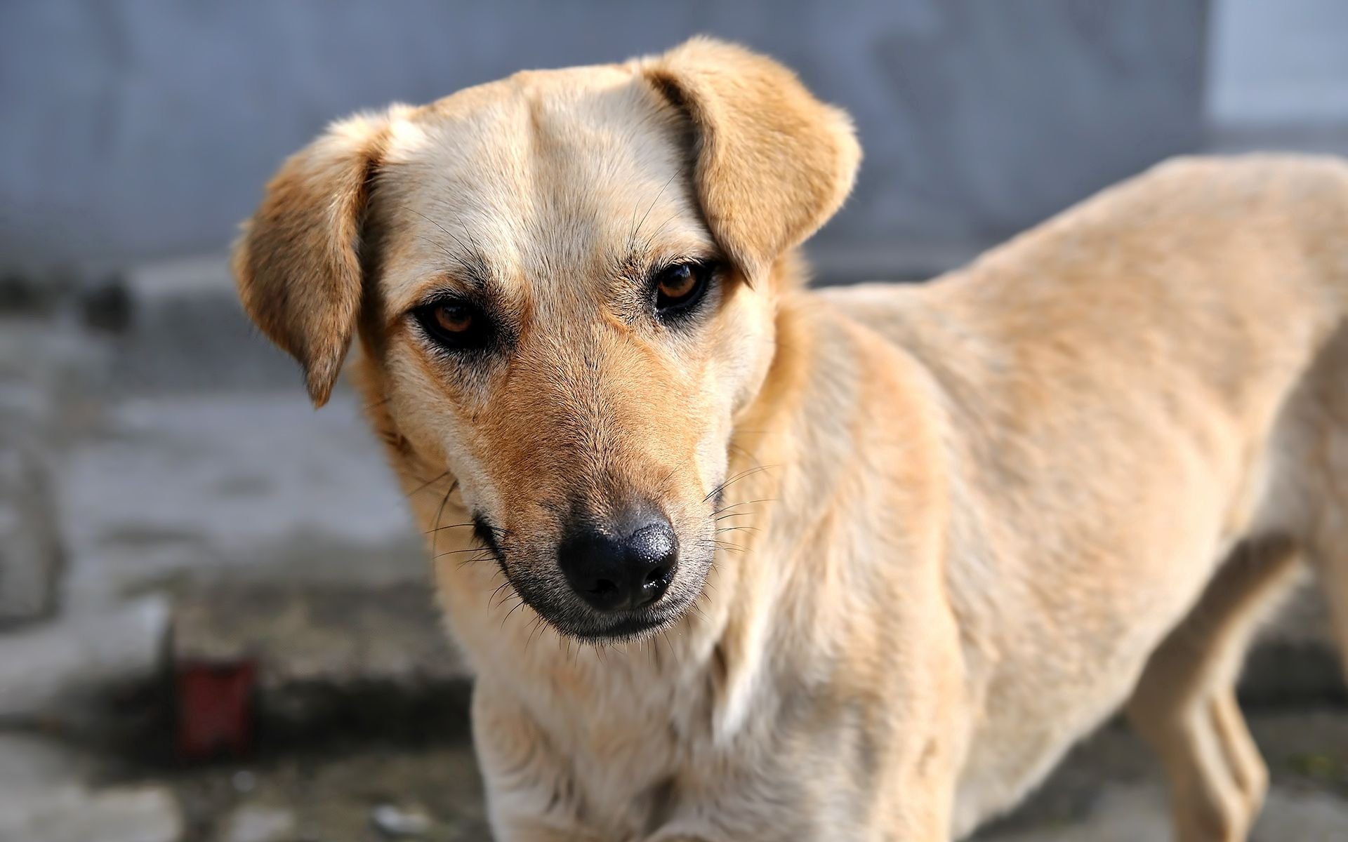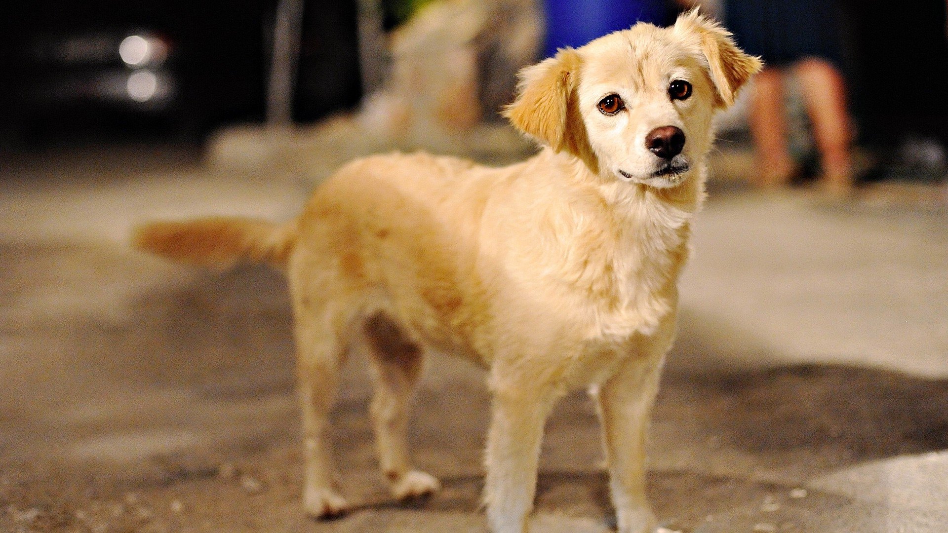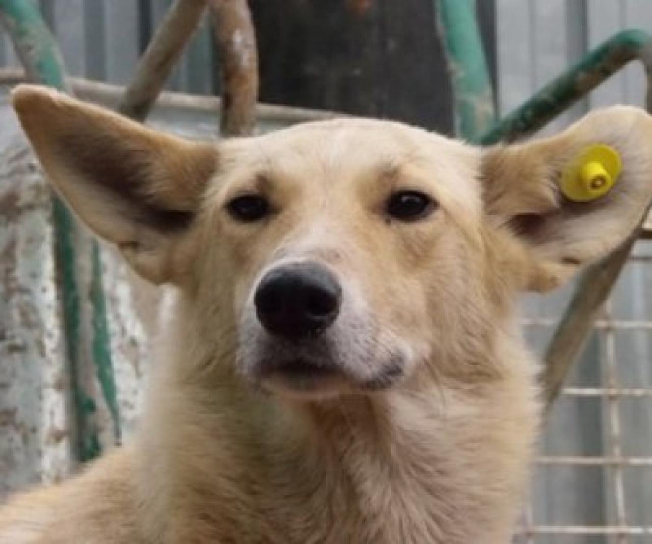 Собака дворняжка кремовая