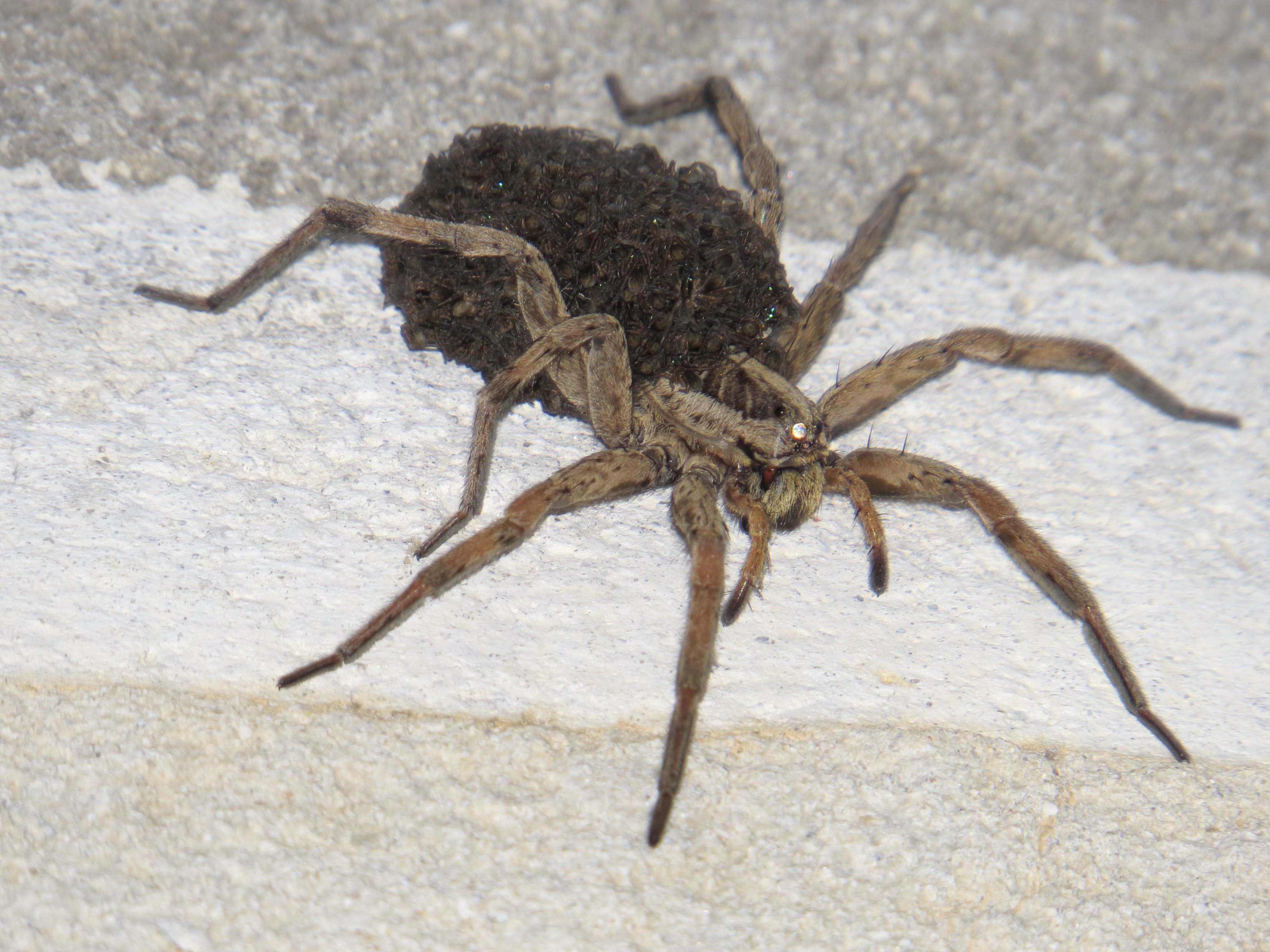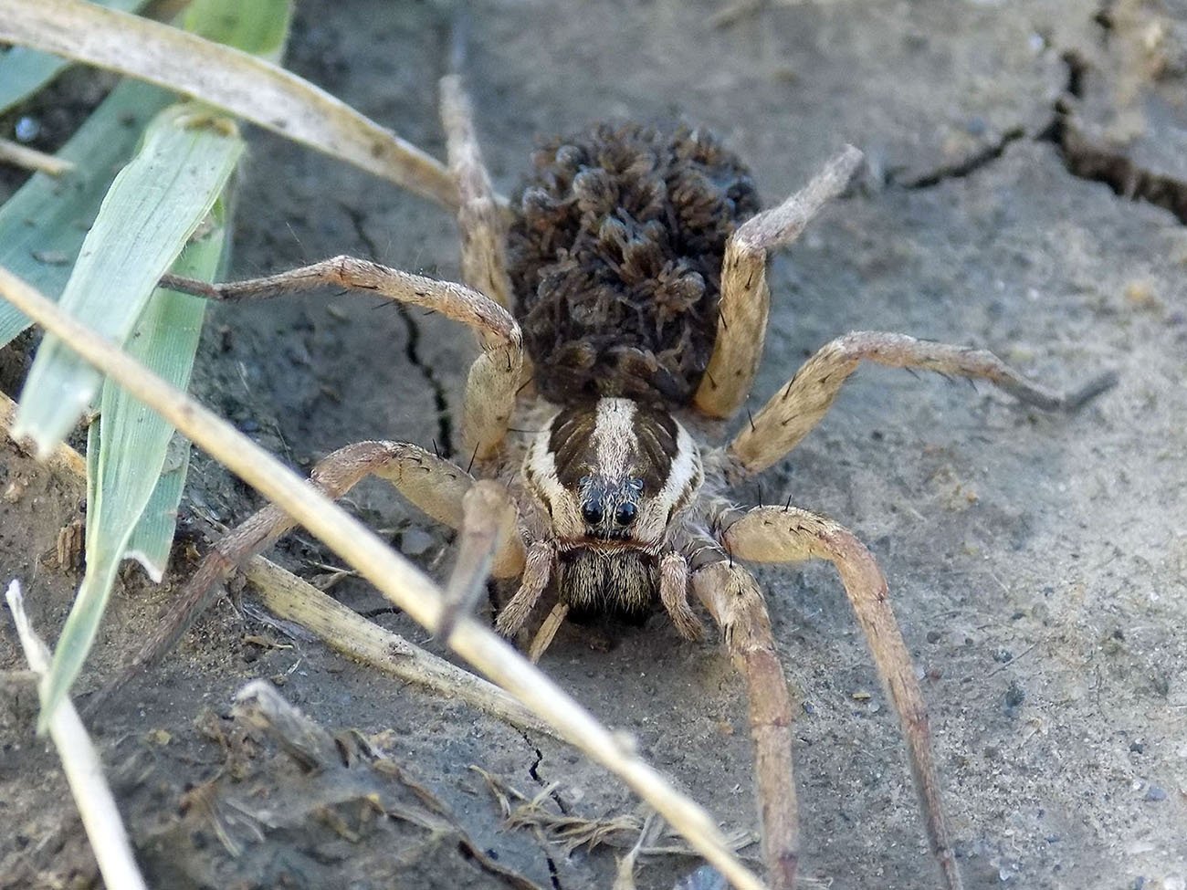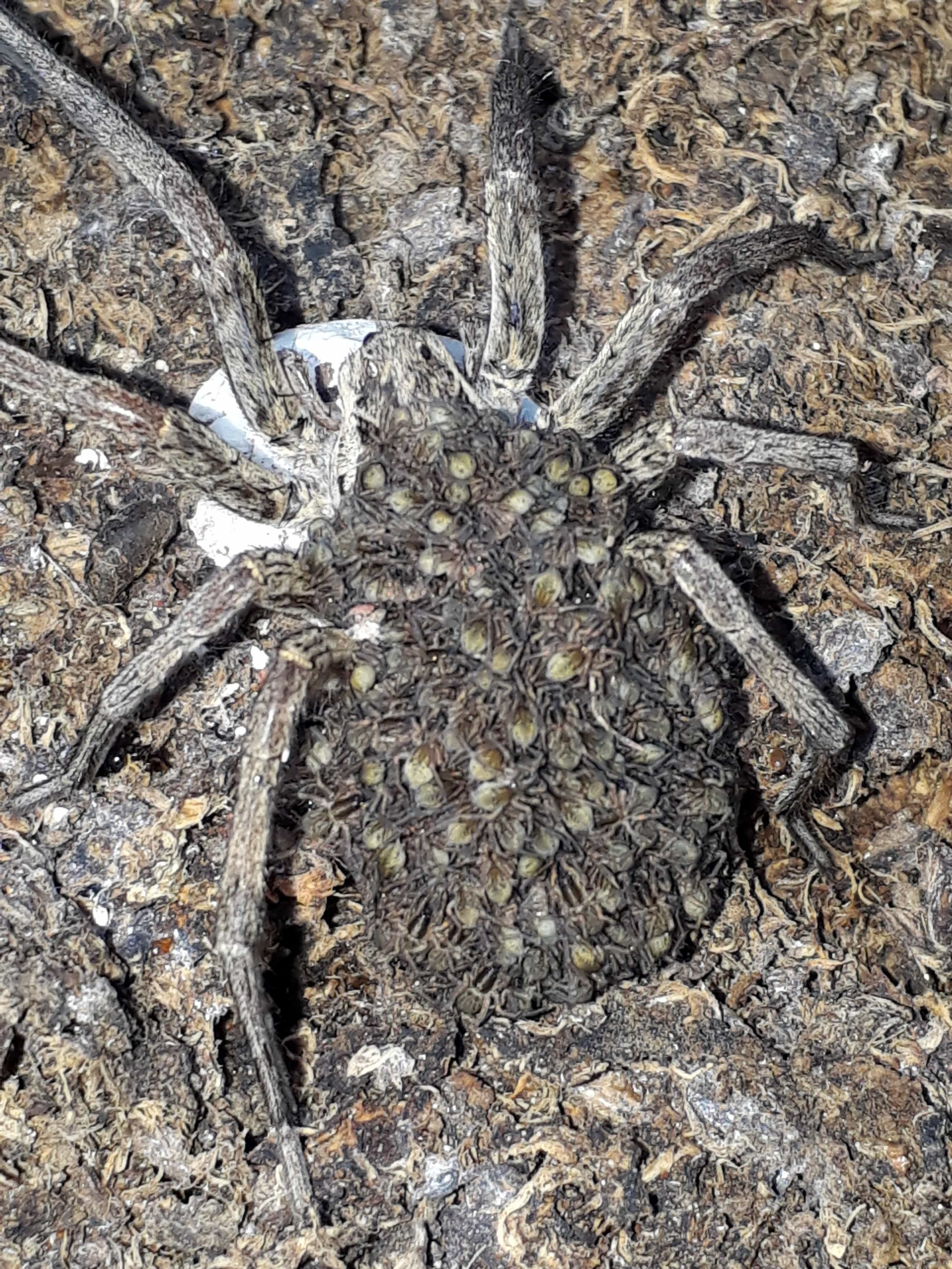 Паук волк с паучатами