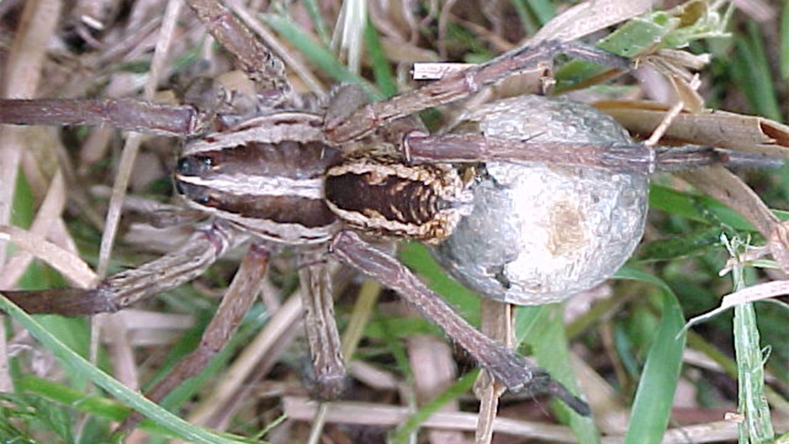 Паук волк самка с коконом