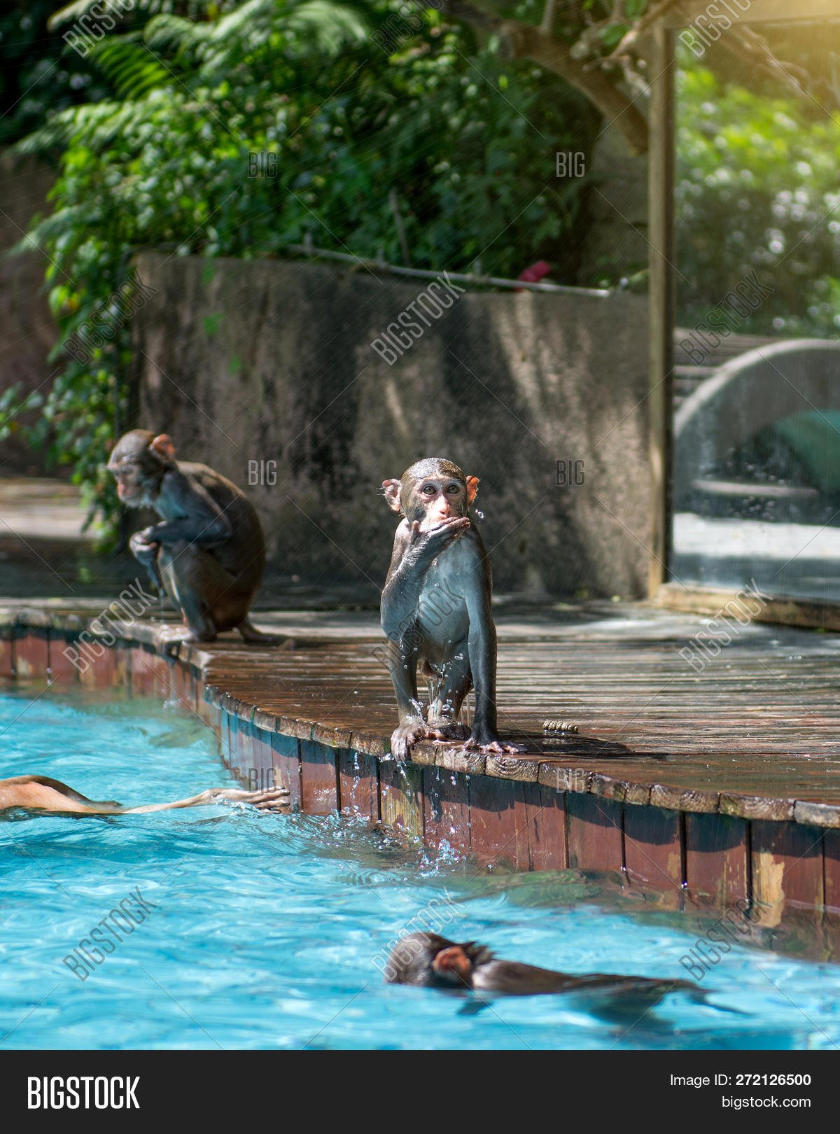 Обезьянка возле бассейна