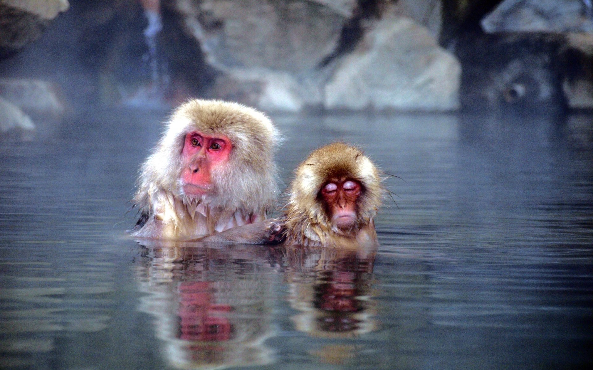 Обезьяны в термальных источниках Японии