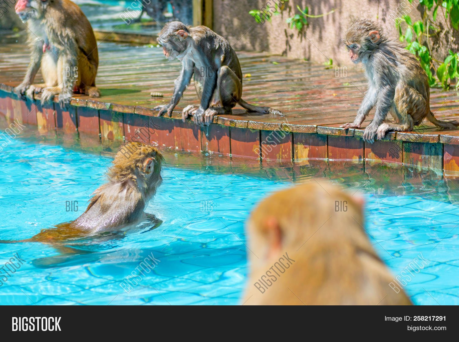 Обезьяны купаются в бассейне