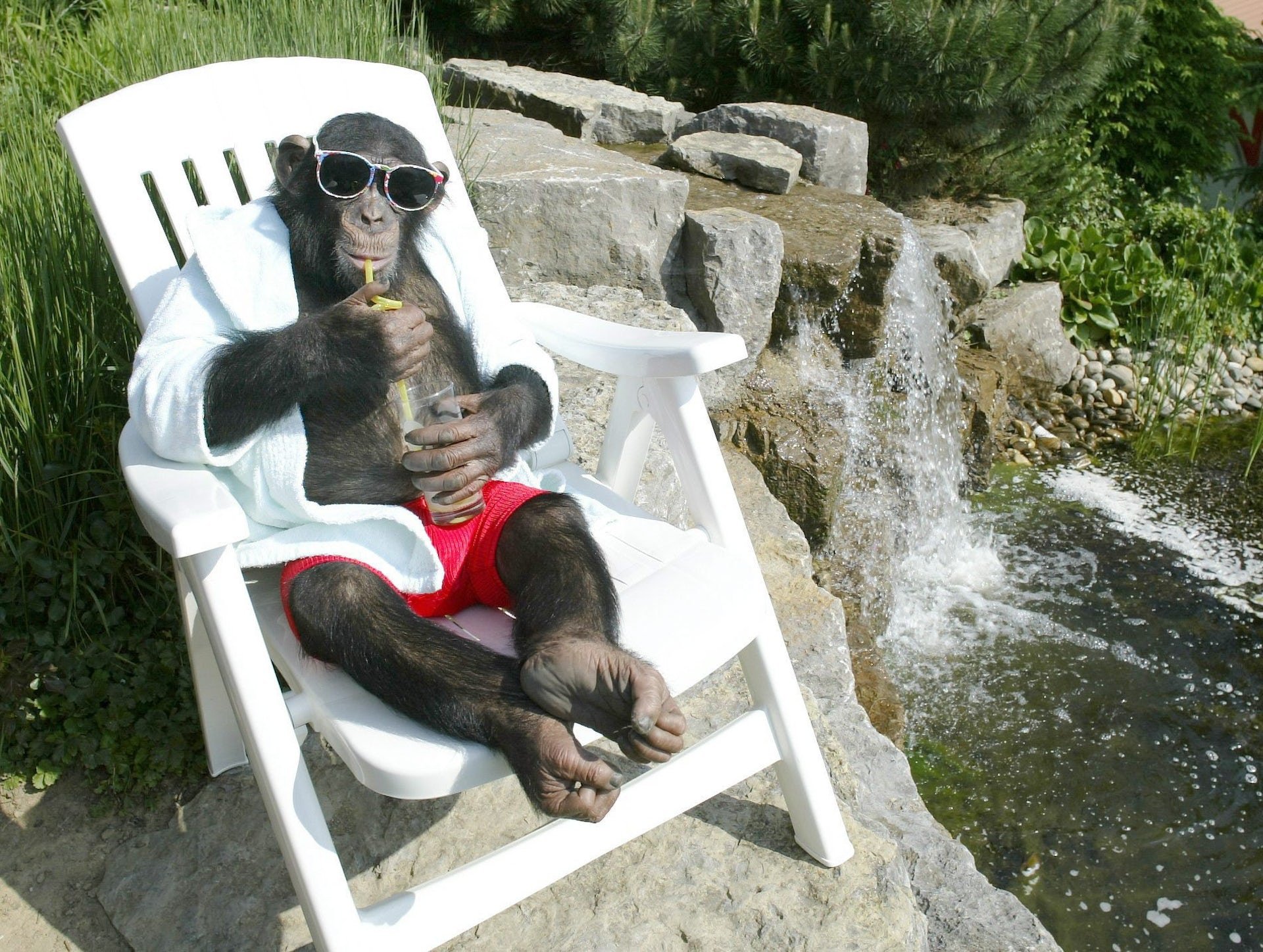 Обезьяна загорает
