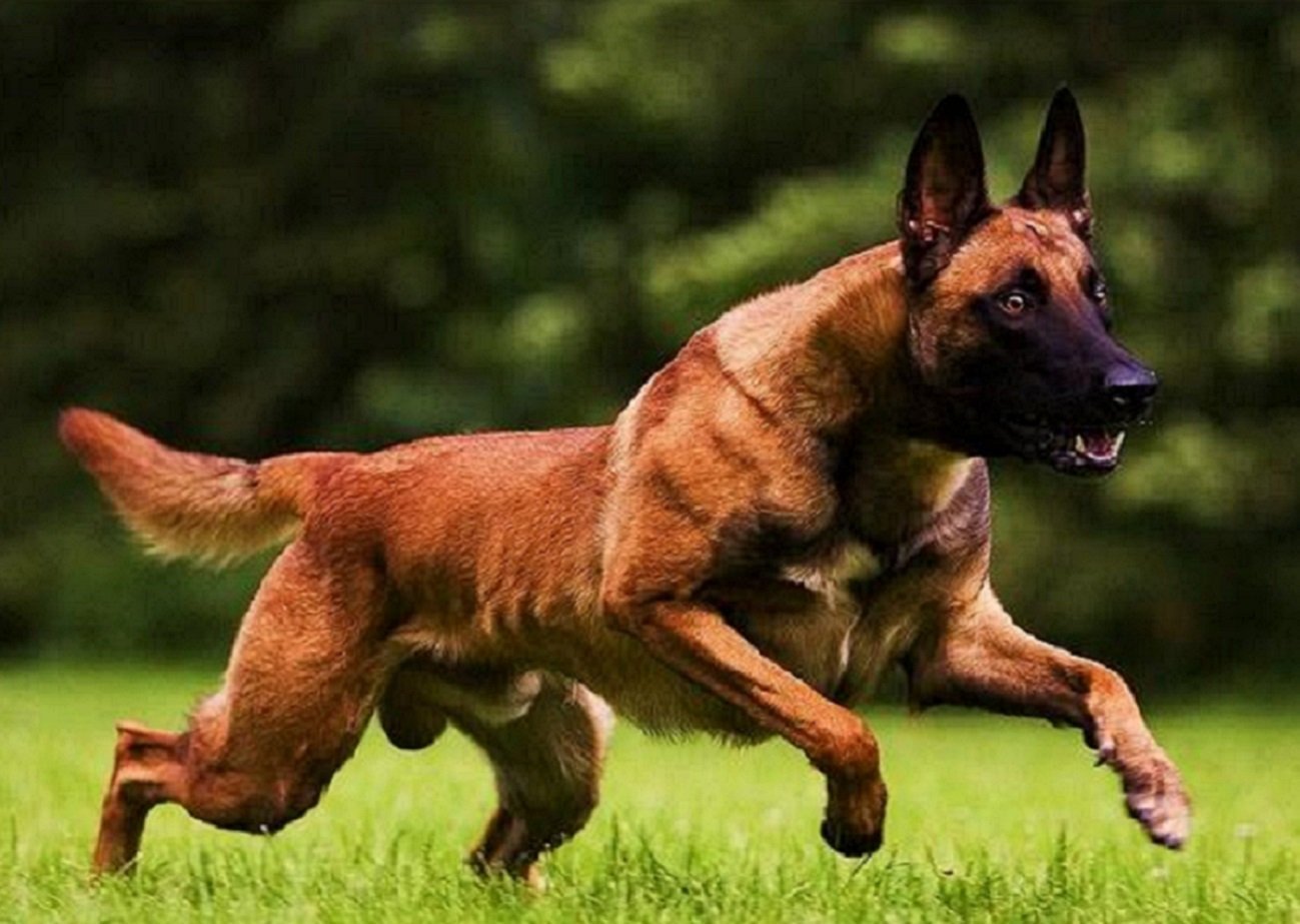 Бельгийская овчарка малинуа в прыжке