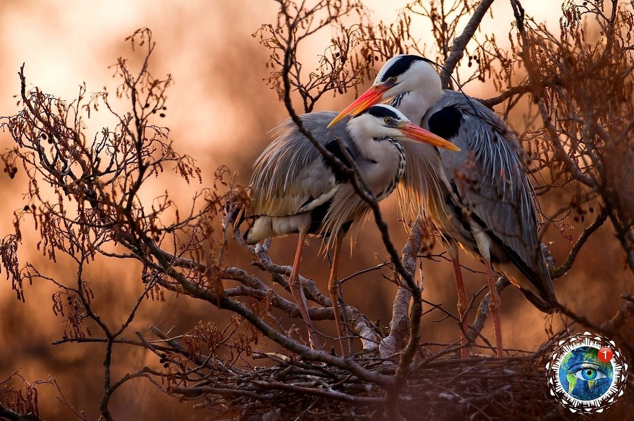 Серая цапля самец и самка