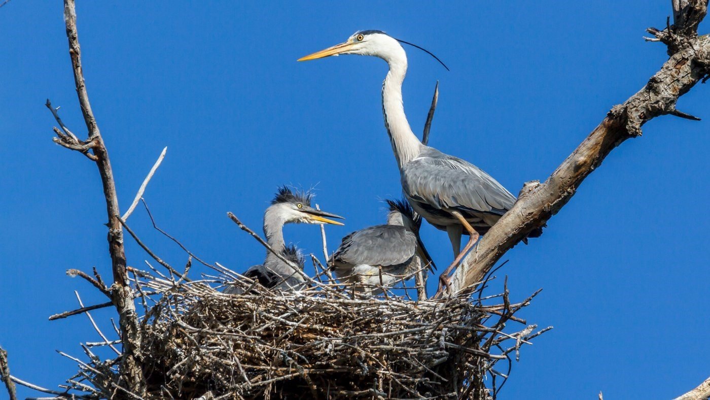 Серая цапля гнездо