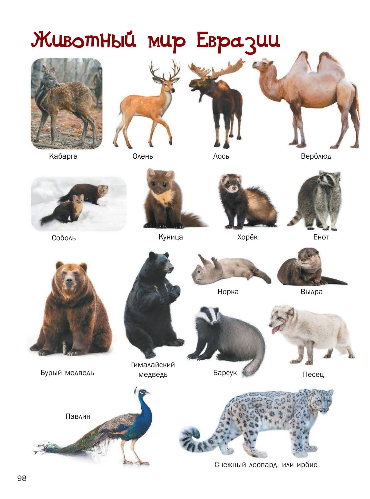 Животные Евразии для детей