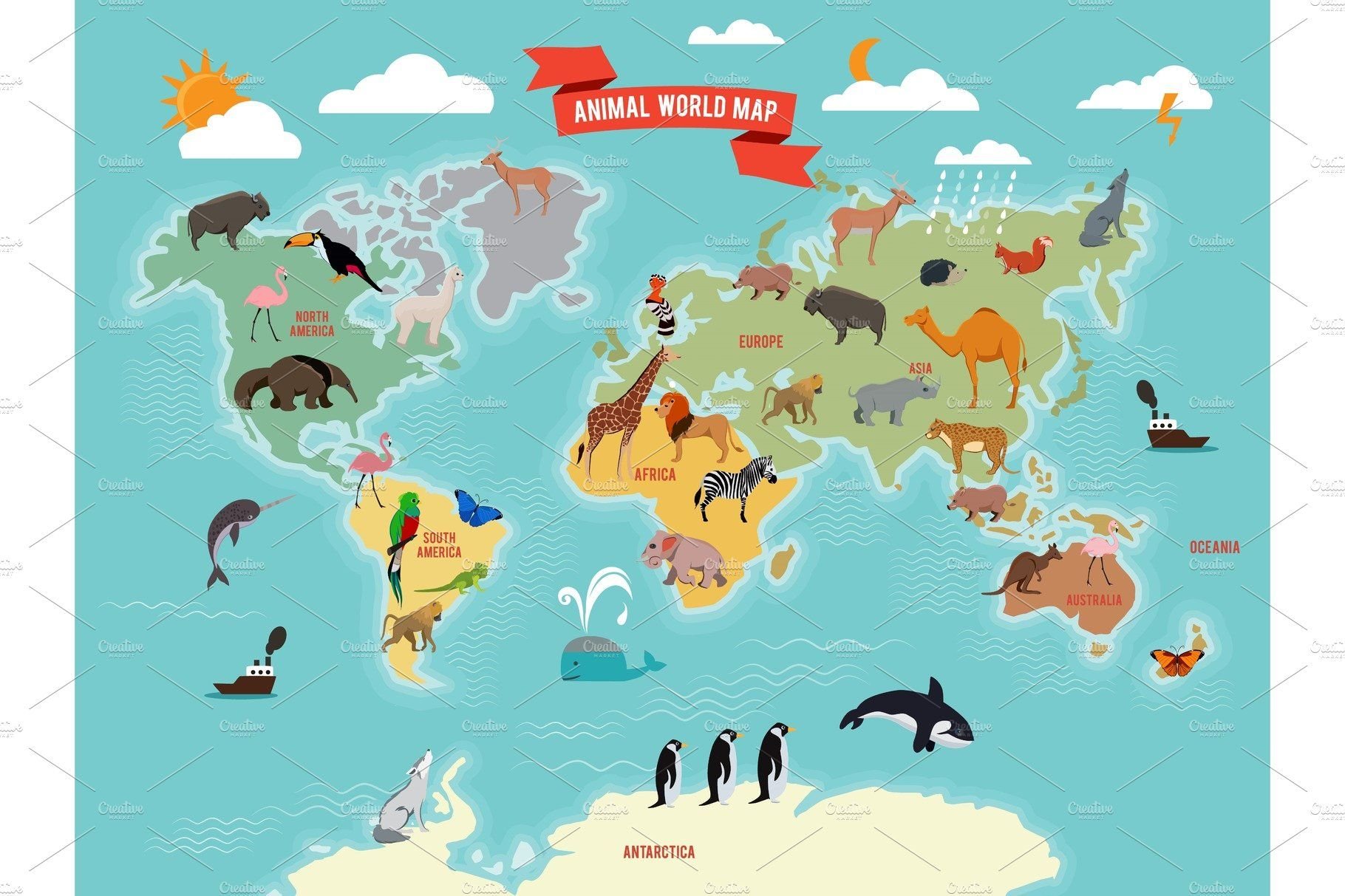 Карта мира с животными для детей вектор