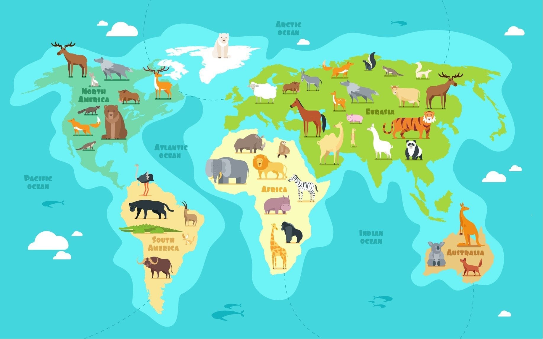 Животные по континентам для детей
