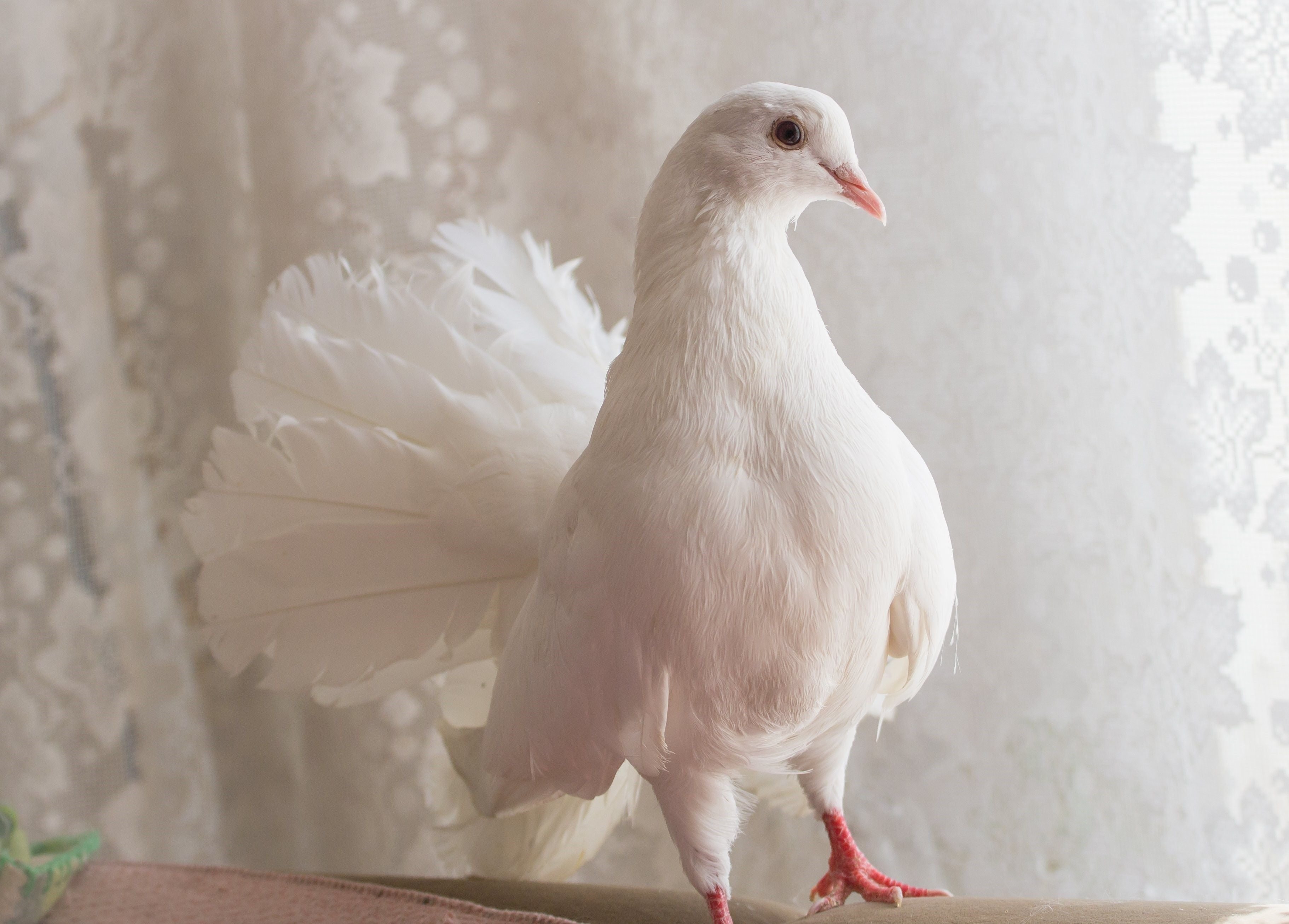 Белый породистый голубь