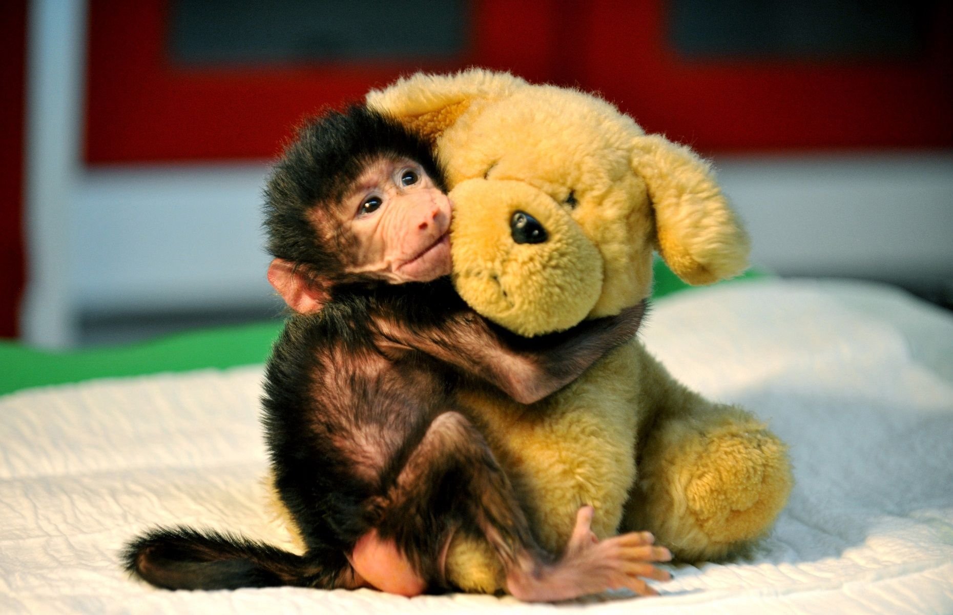 Две обезьянки обнимаются