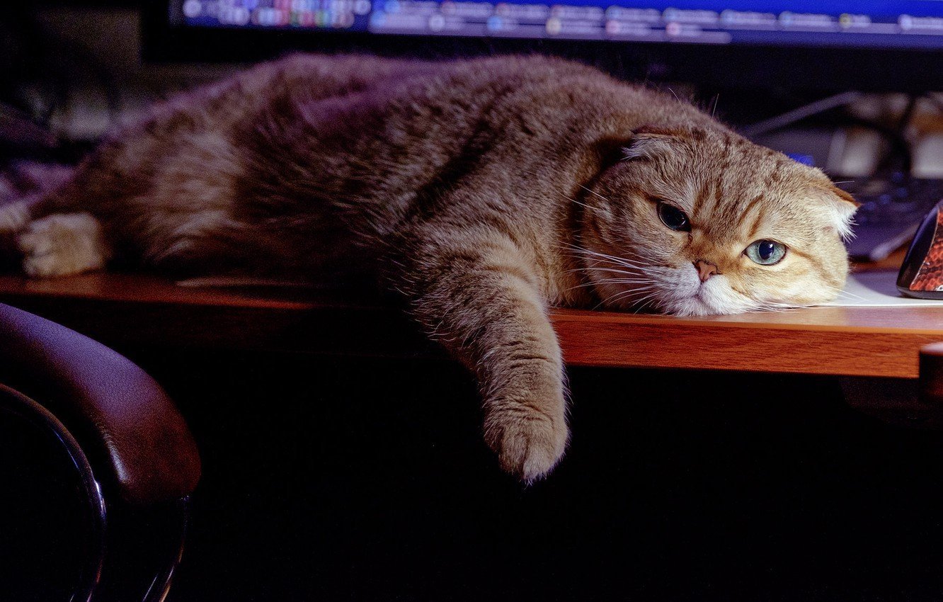 Обои на рабочий стол уставший кот