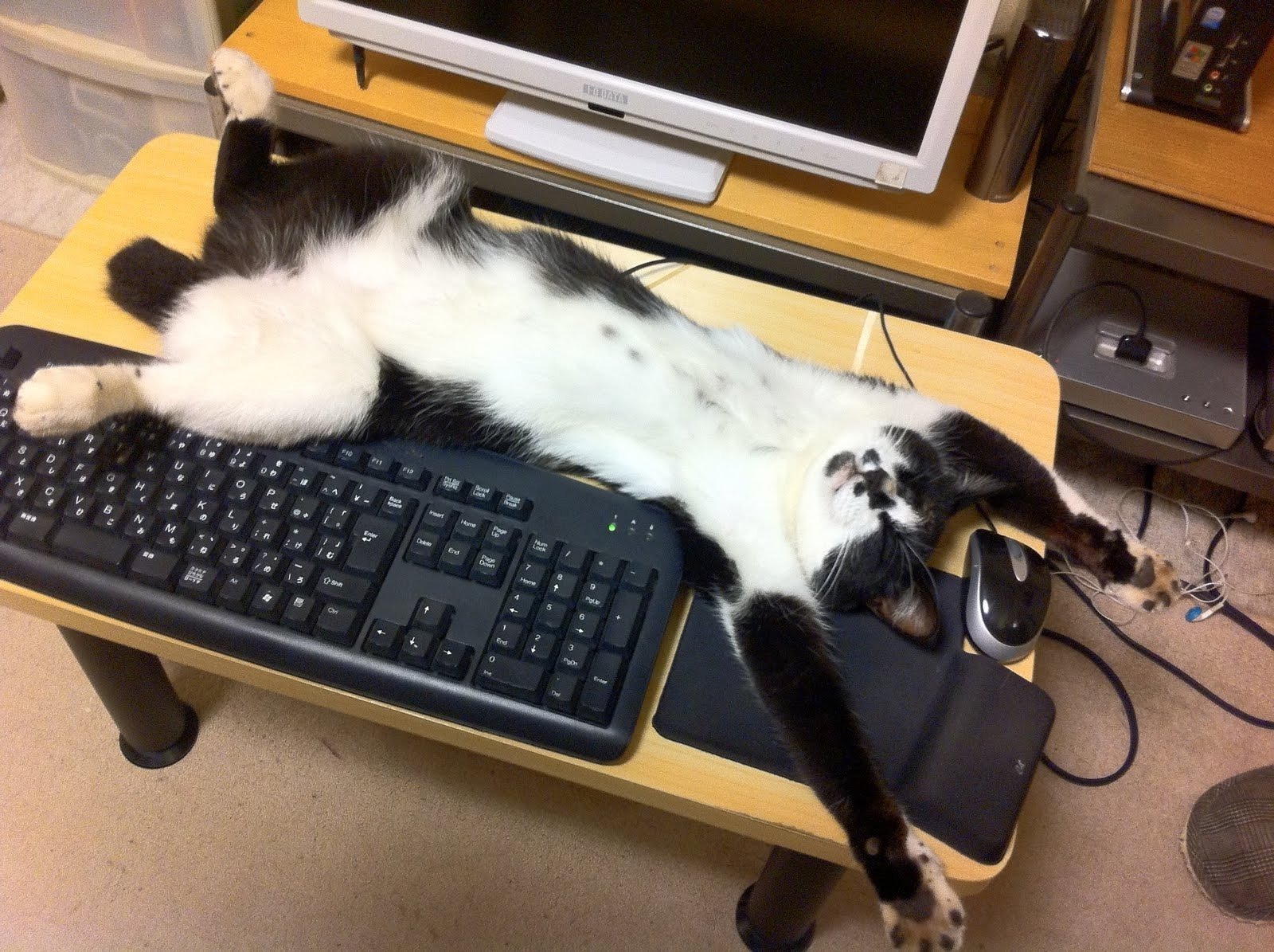Котик спит за компьютером
