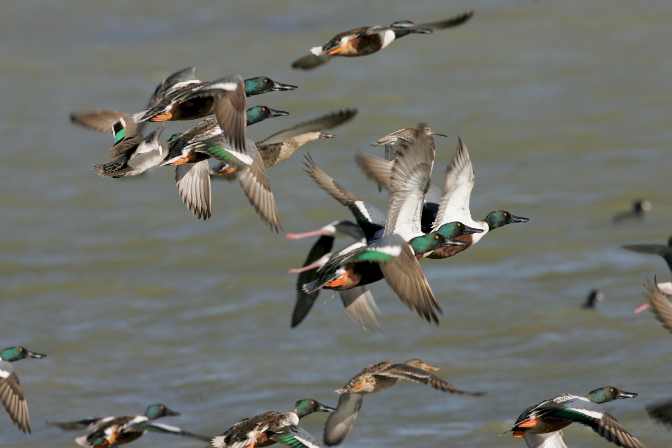 Стая уток свиязь