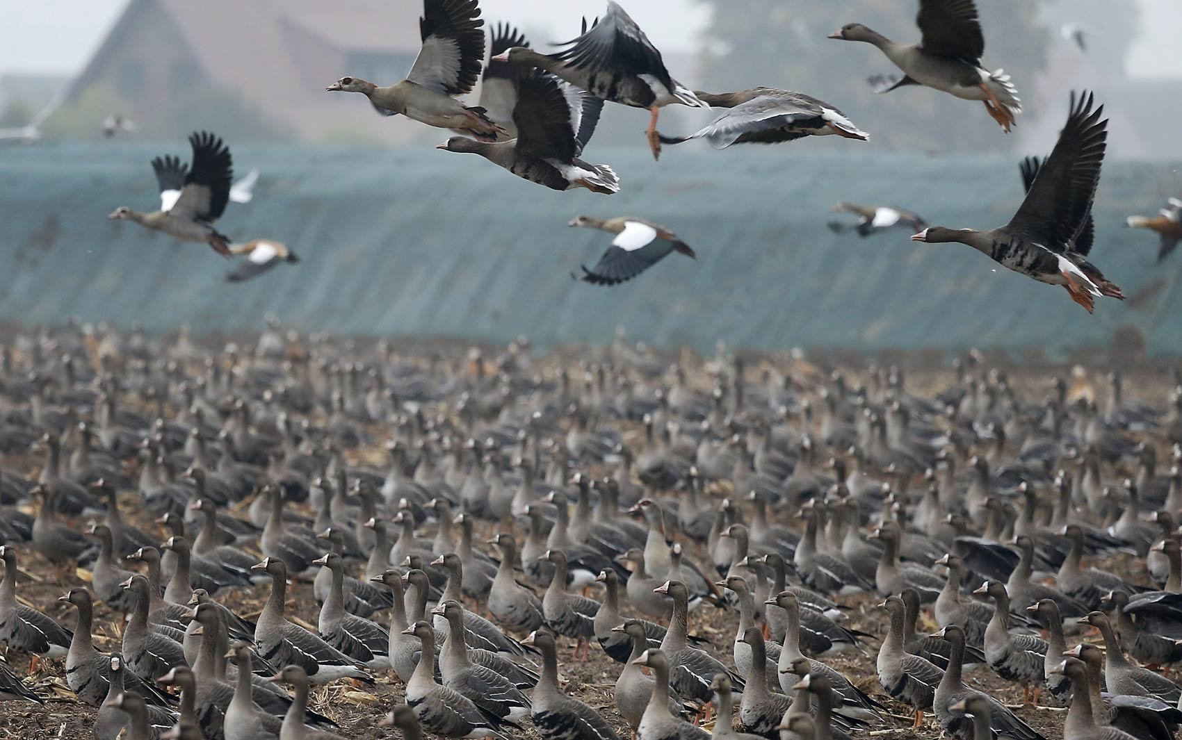 Гусиная стая белолобого гуся