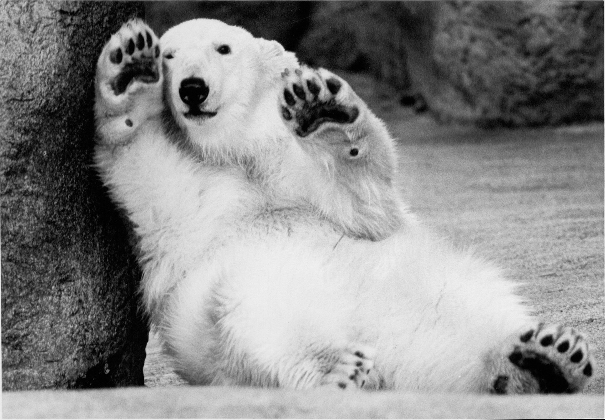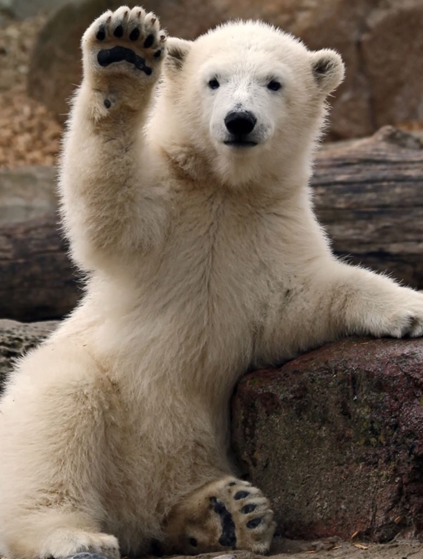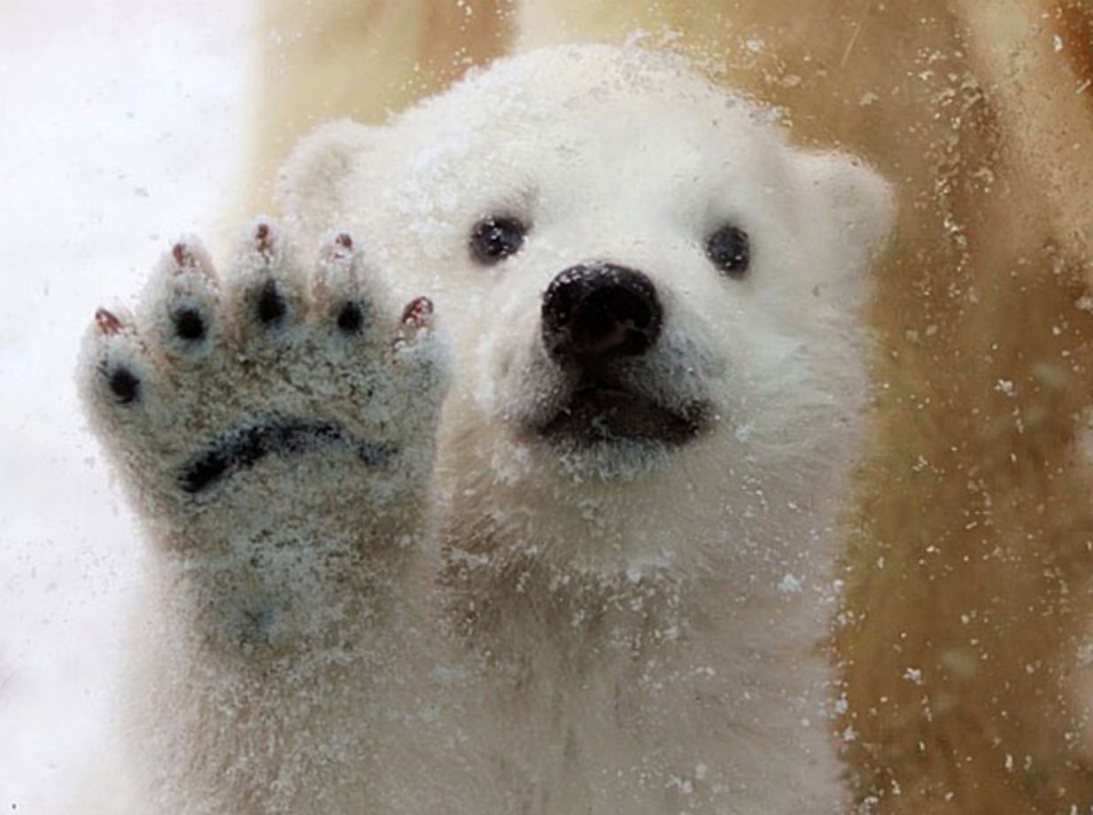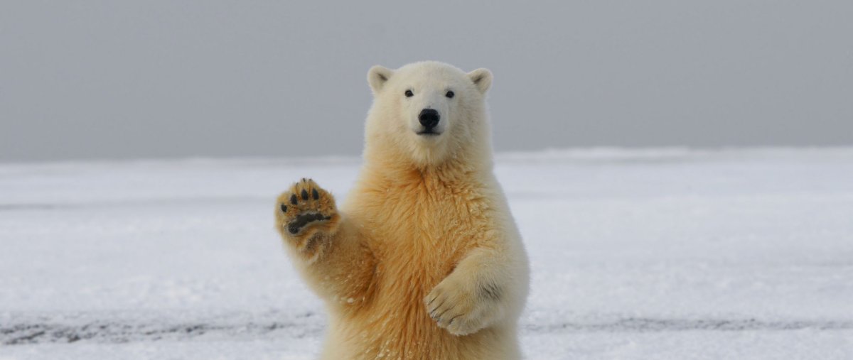 Белый медведь машет лапой