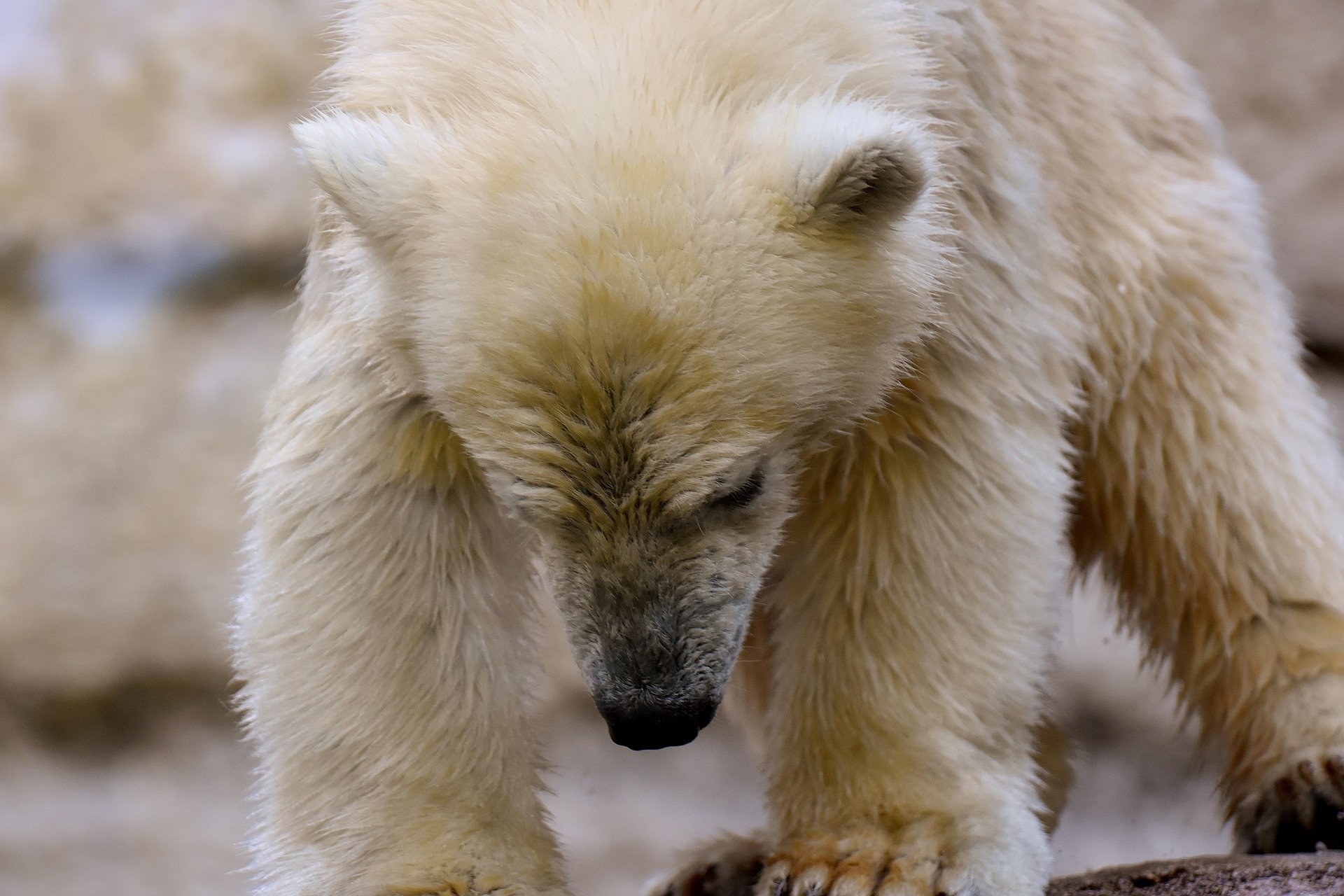 Грустный белый медведь