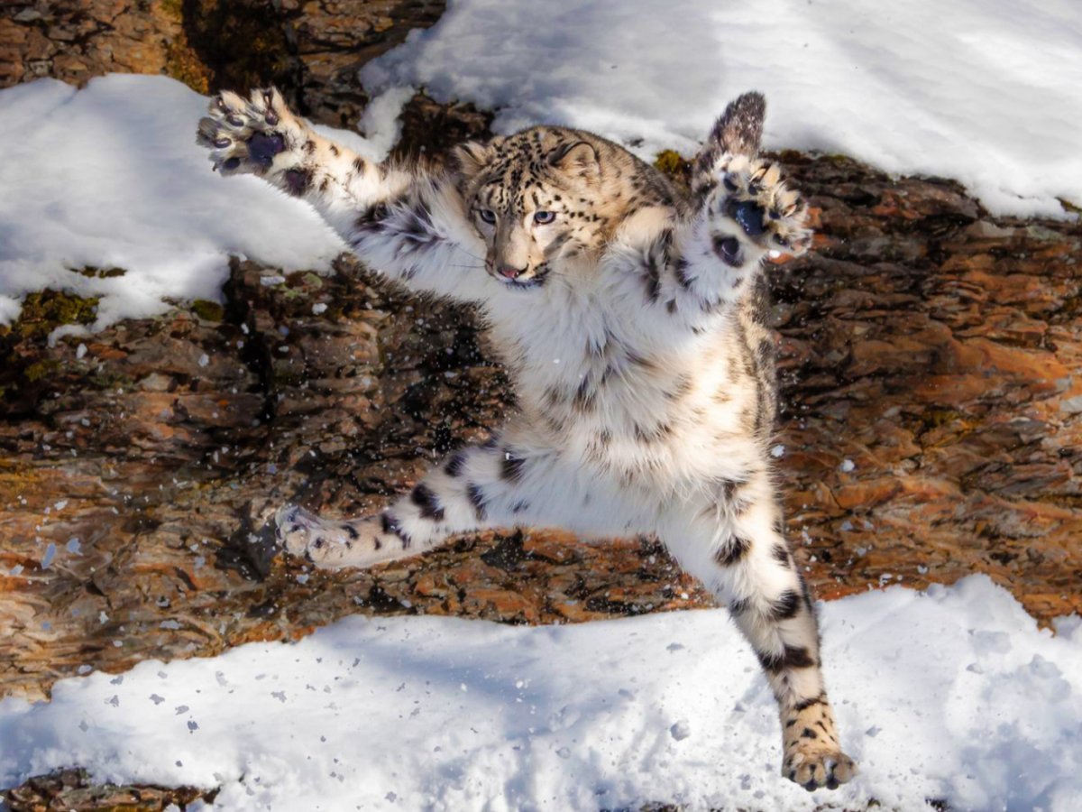 Ирбис снежный Барс в прыжке