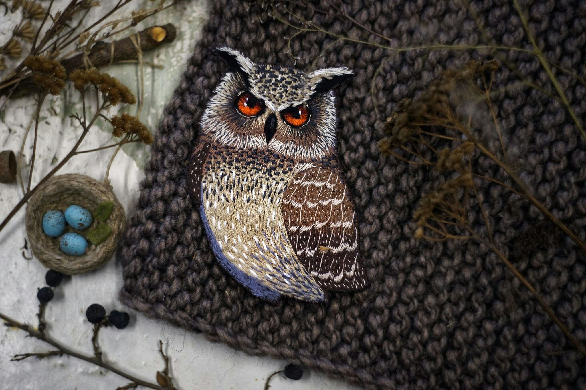 Сова вышитая гладью