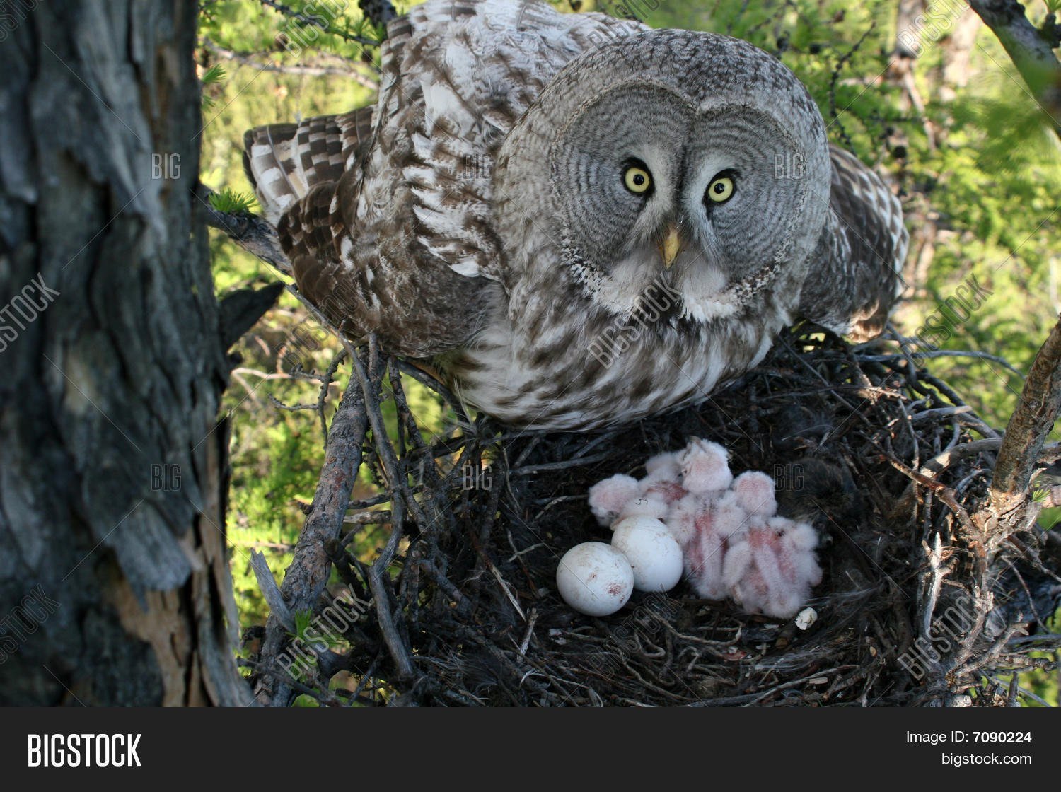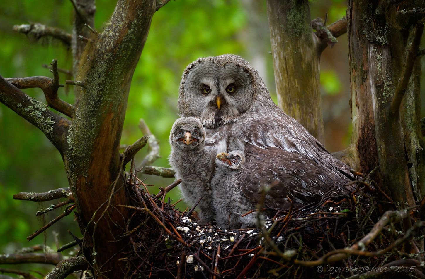 Сова с совятами в гнезде
