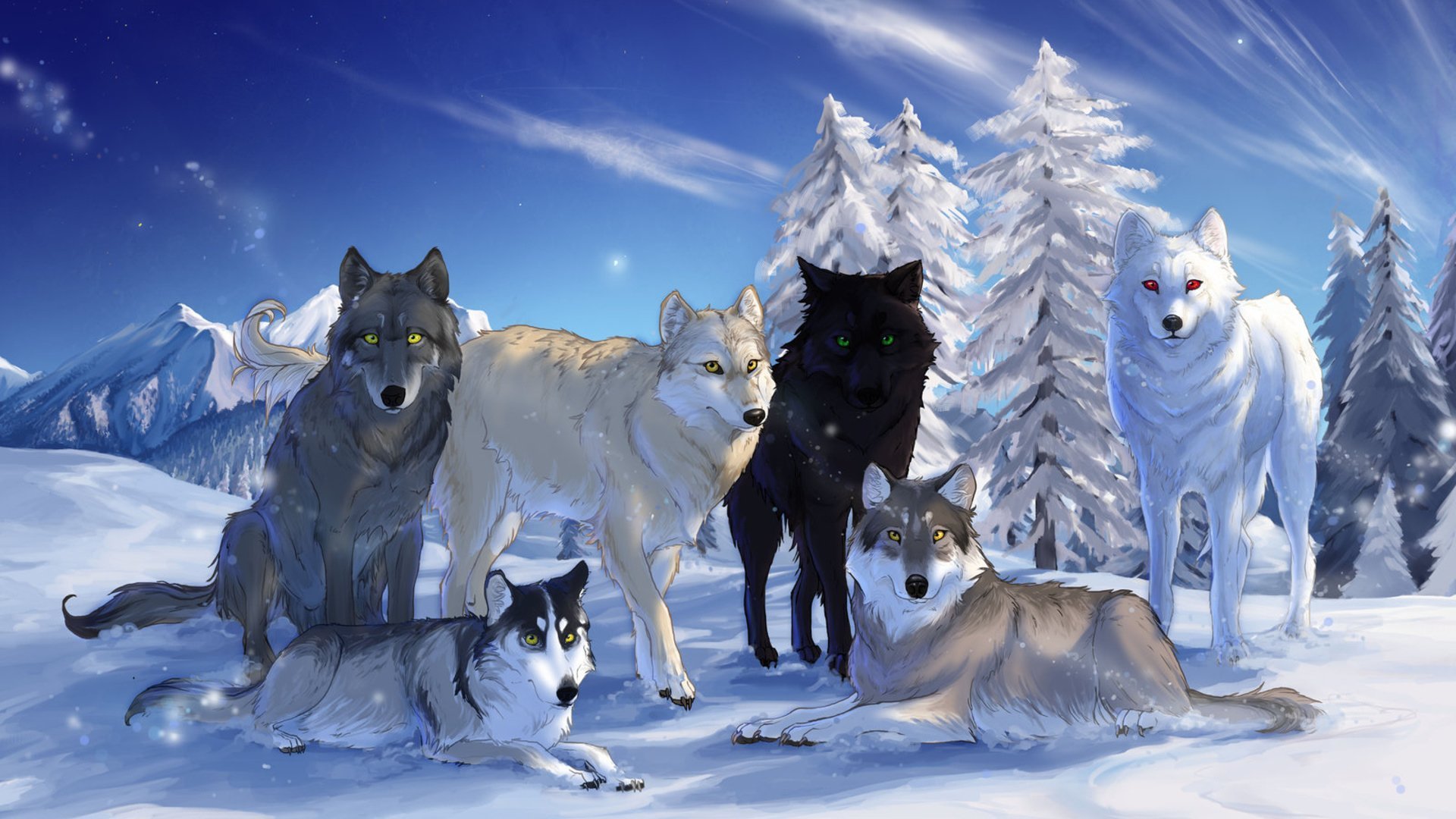 Волки на красивом фоне
