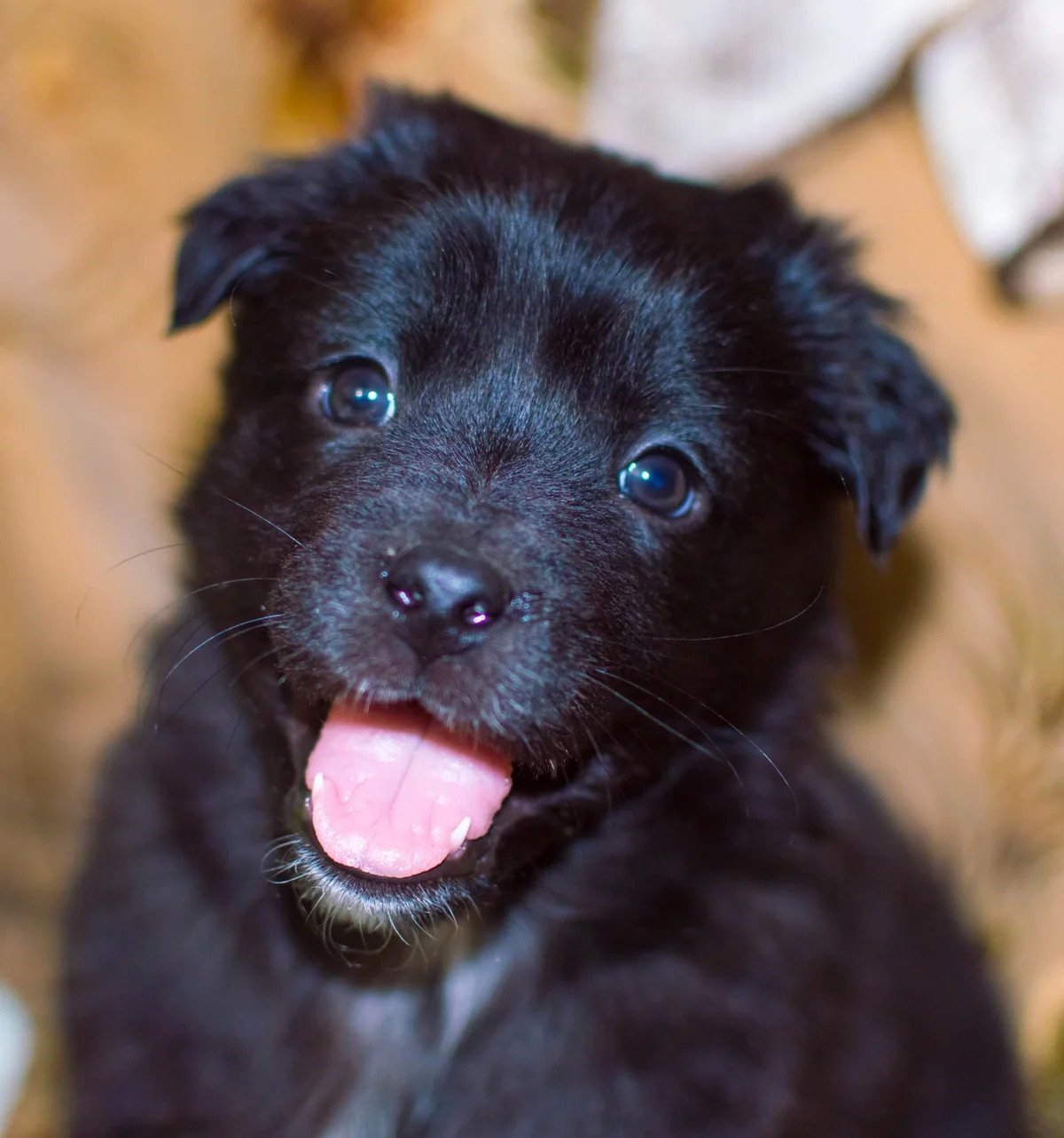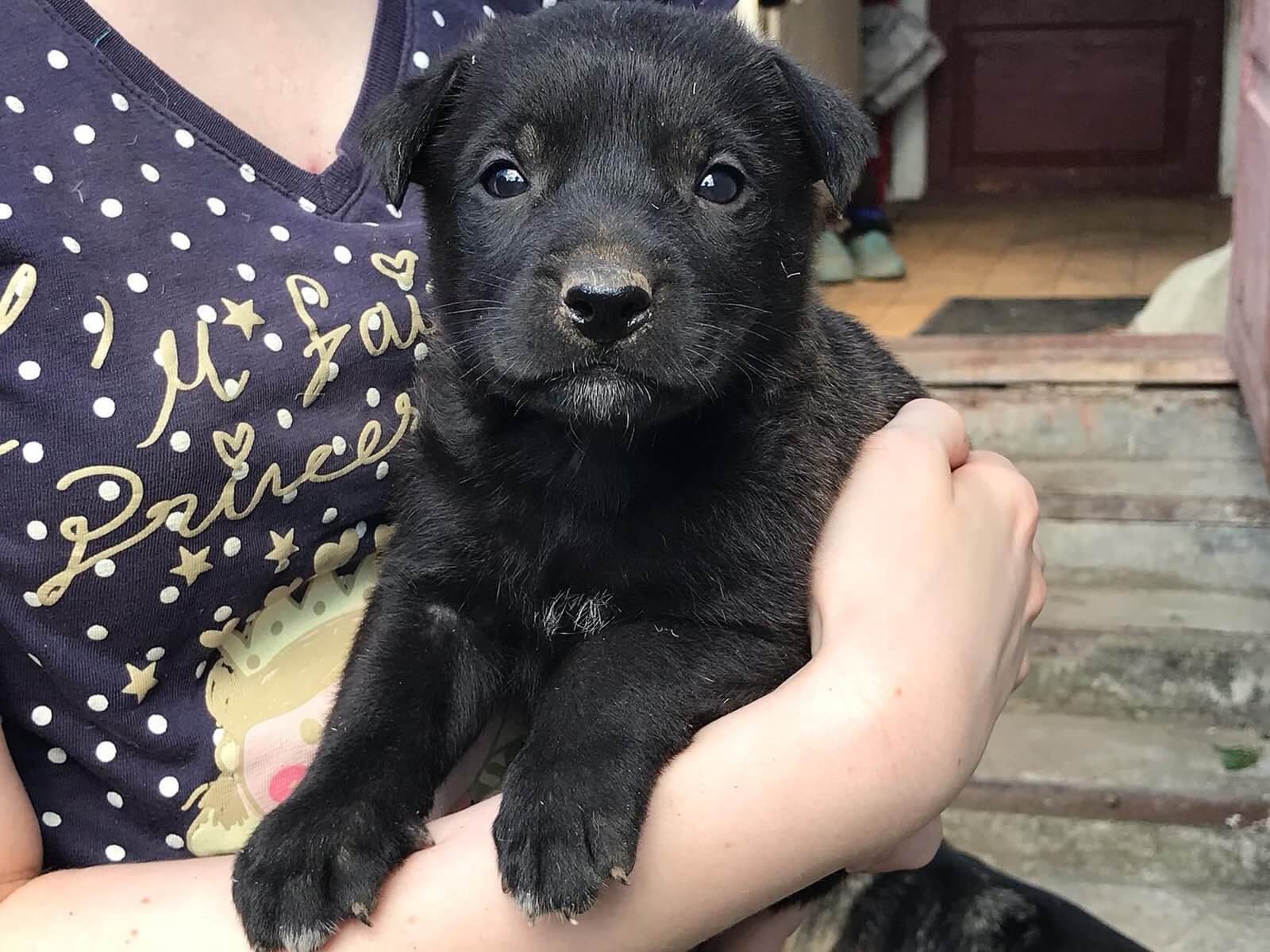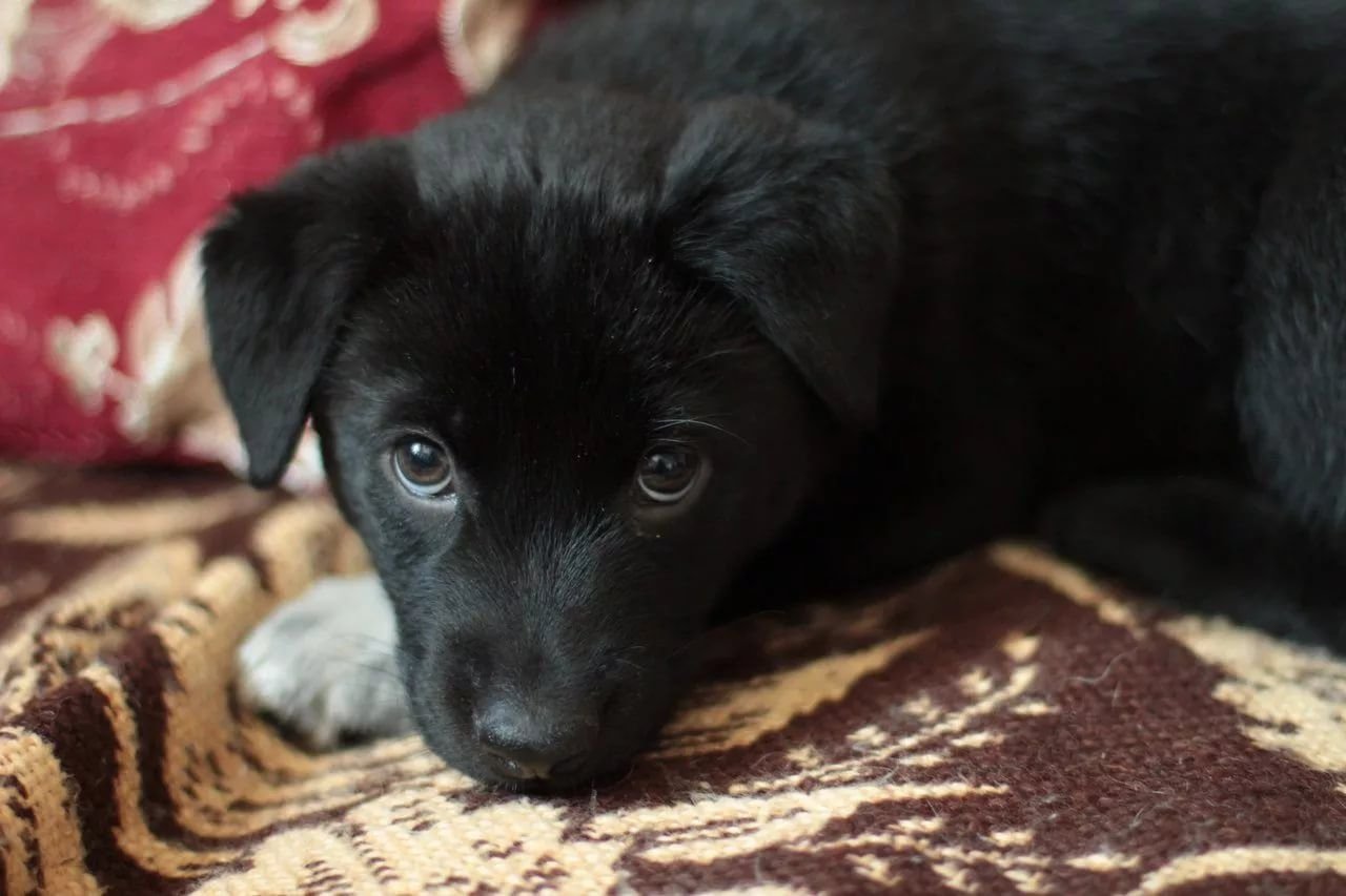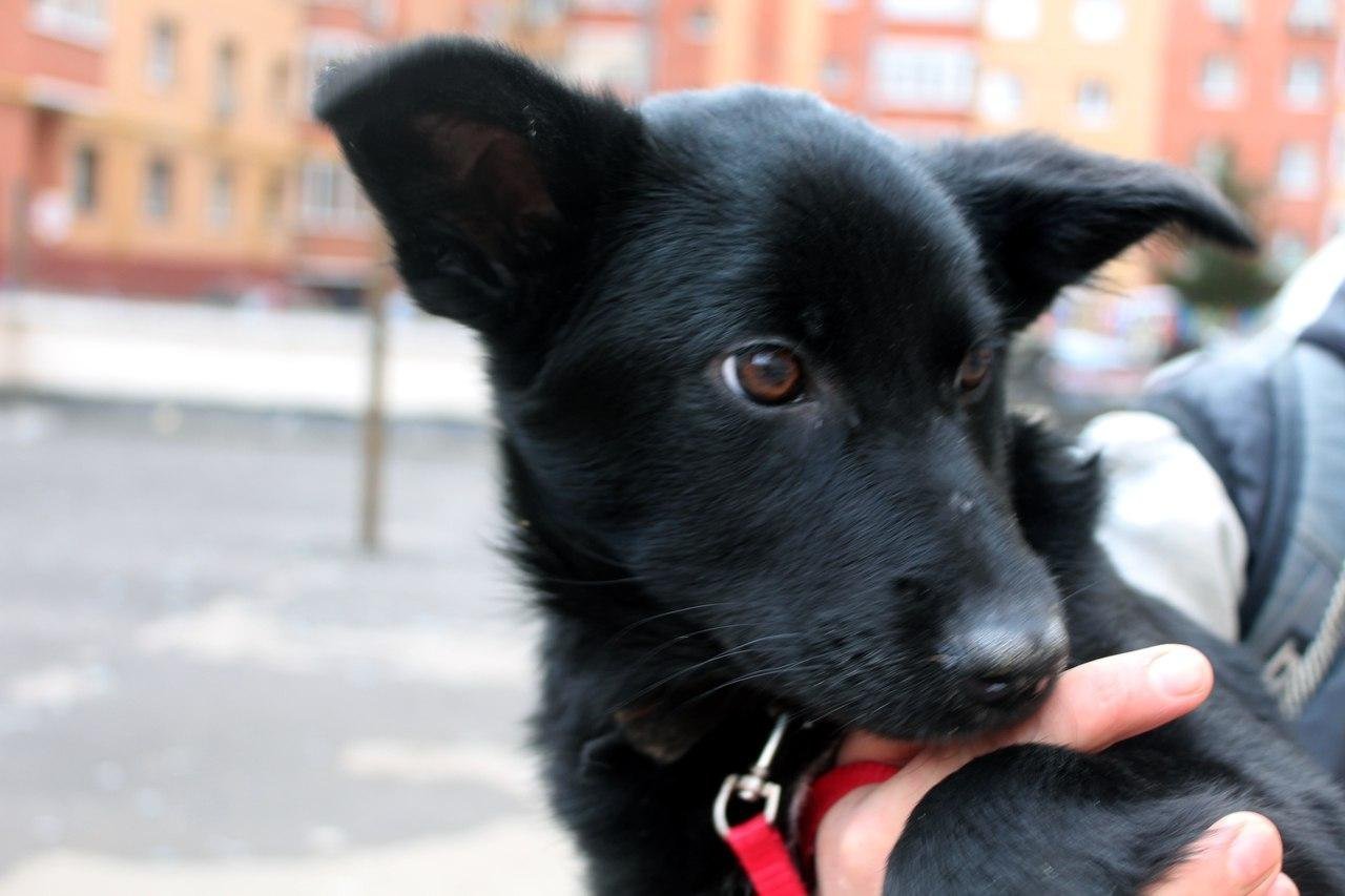 Щенок черный дворняжка дворняжка