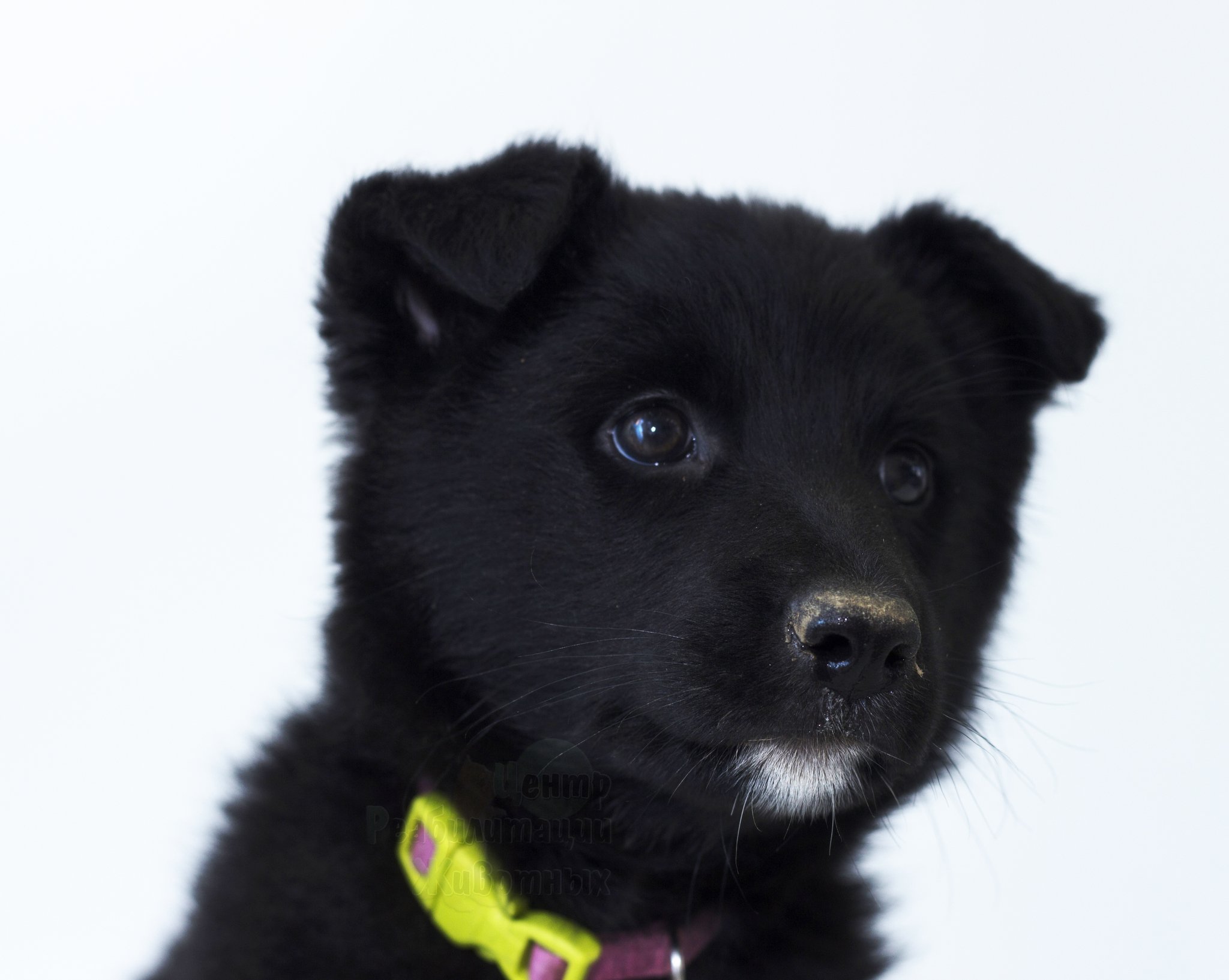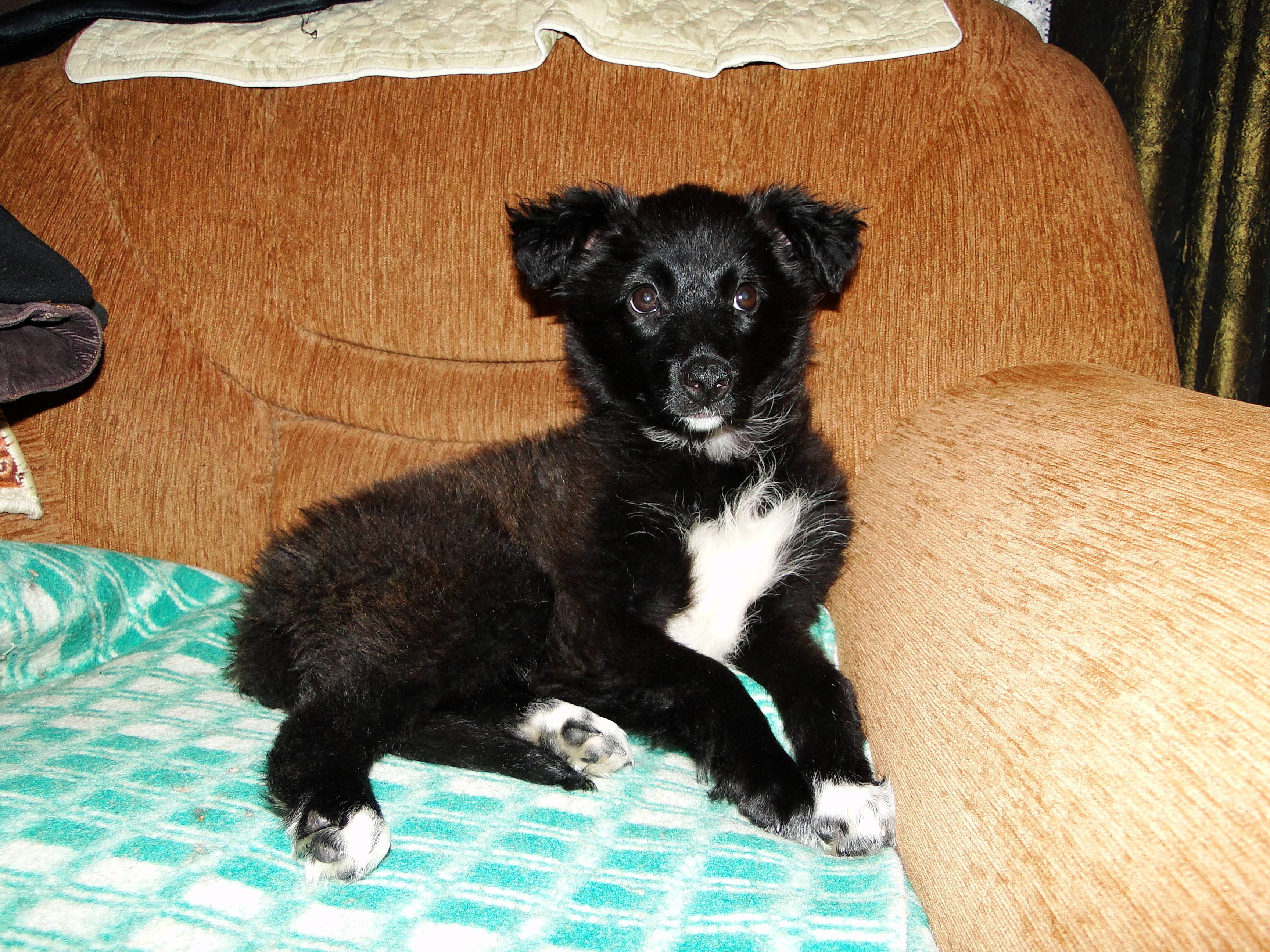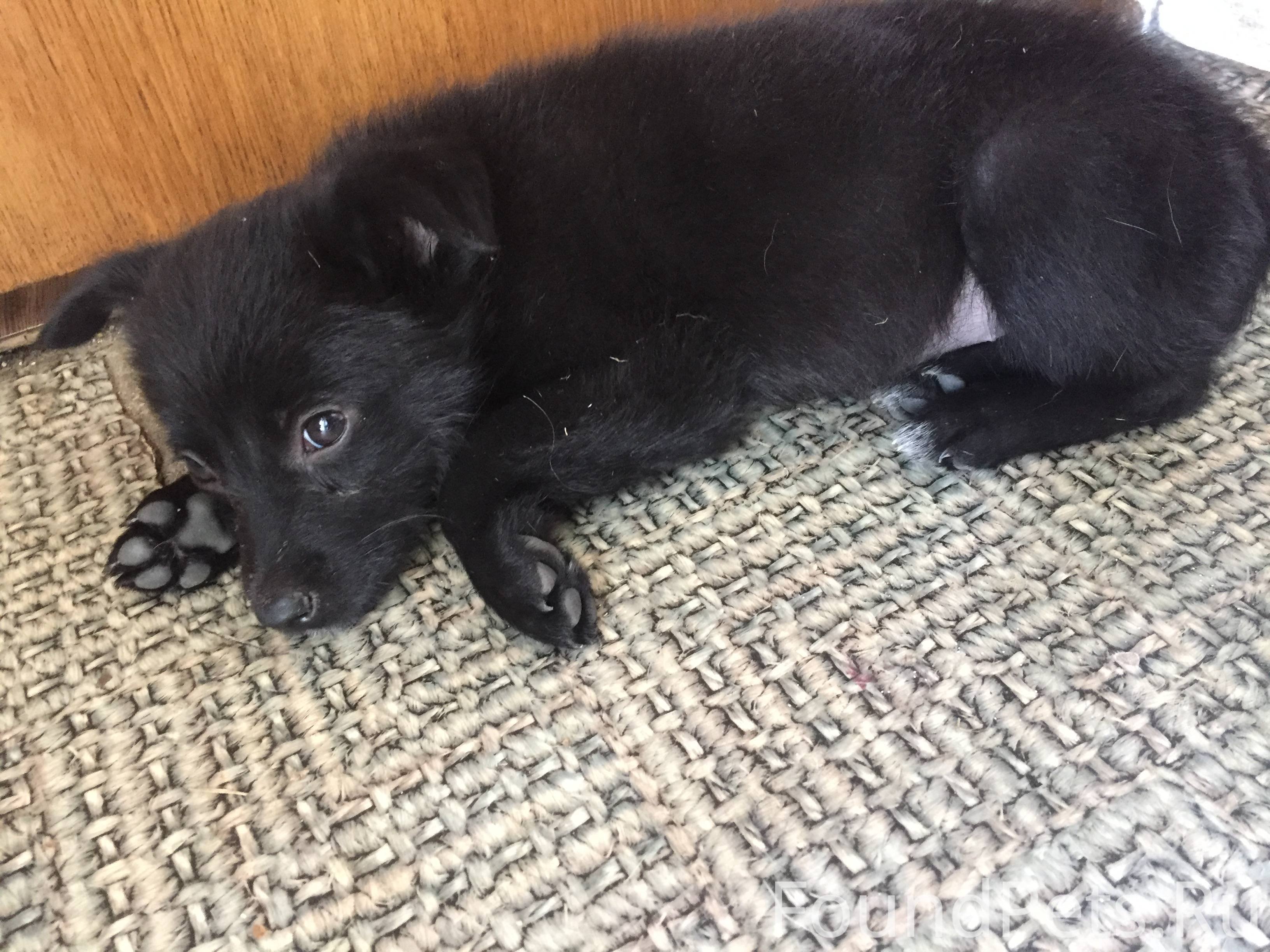 Щенок черный пушистый дворняга