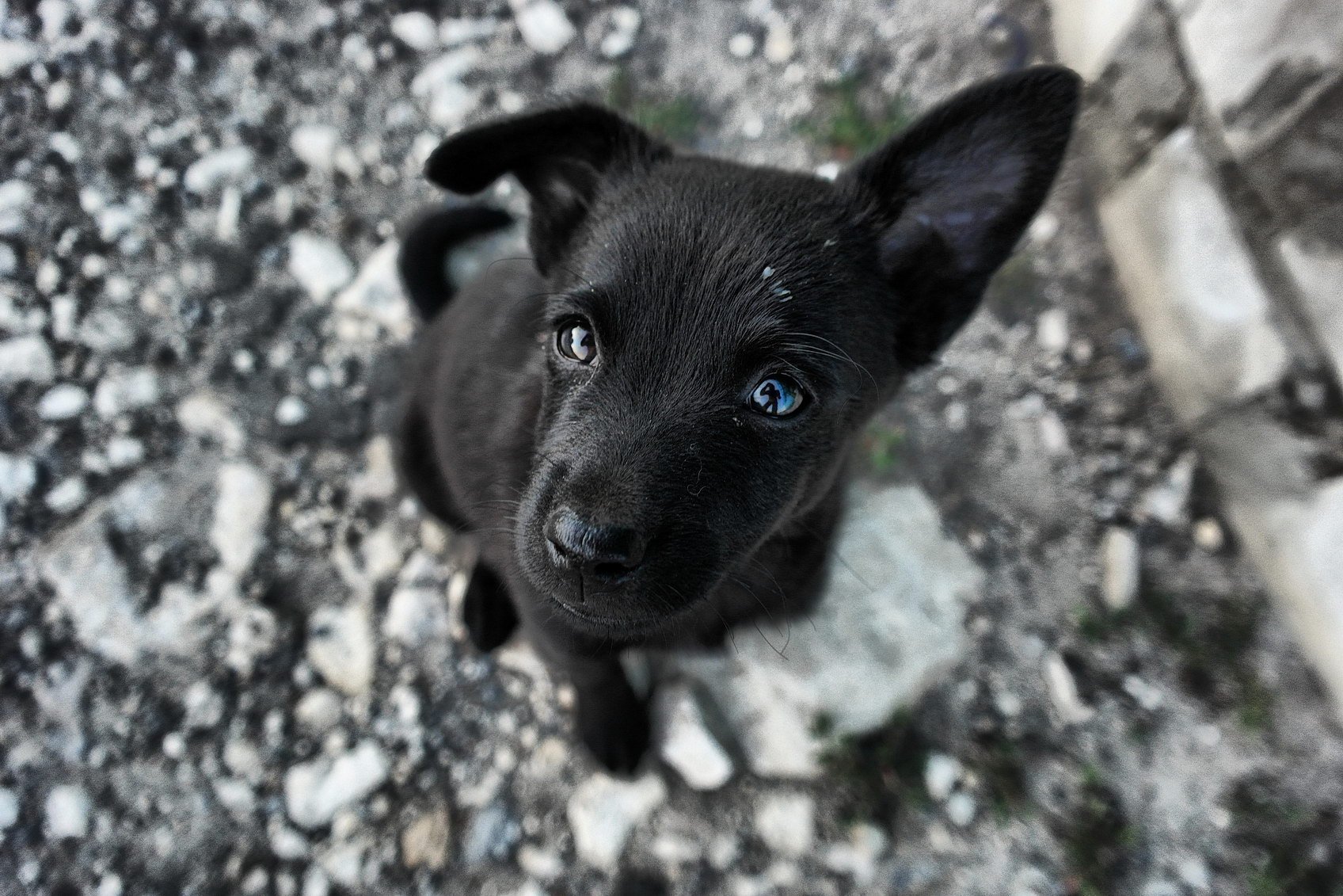 Черный щенок дворняги