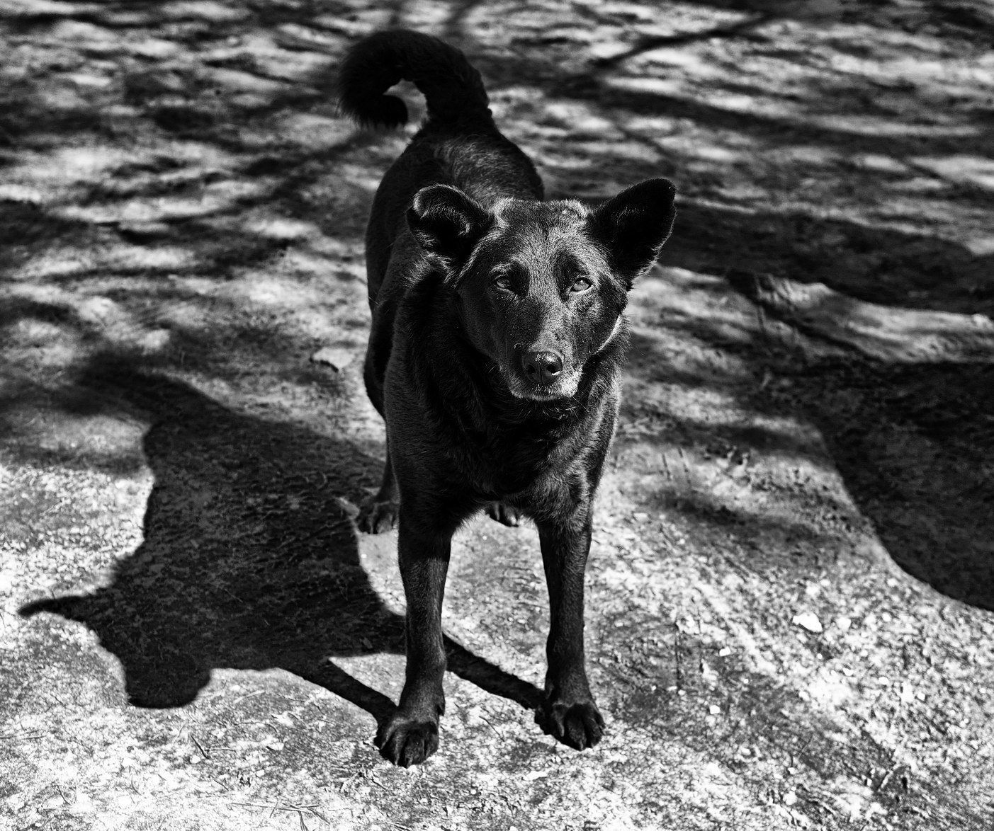 Дворняга и черная немецкая овчарка
