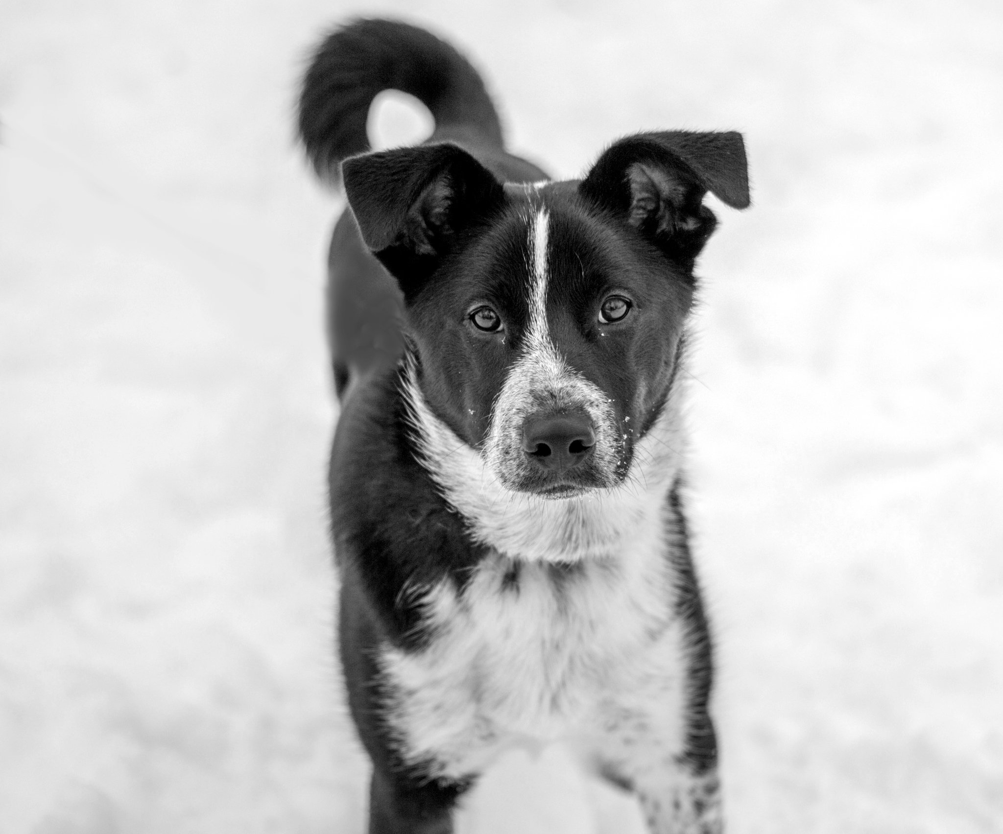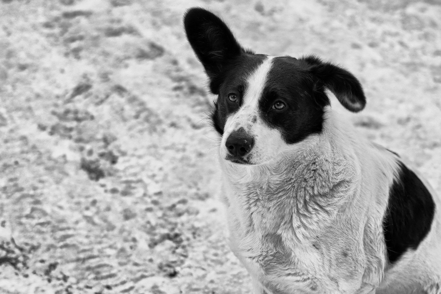 Черно белая дворняга