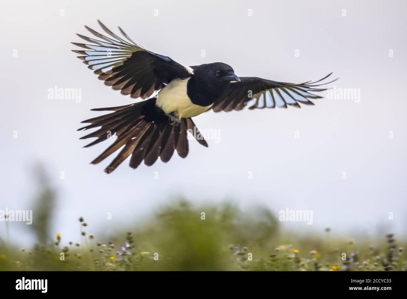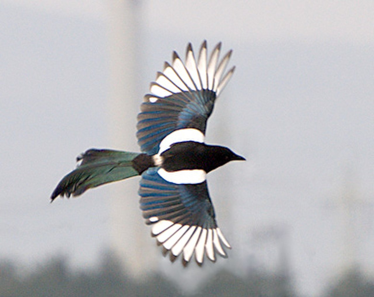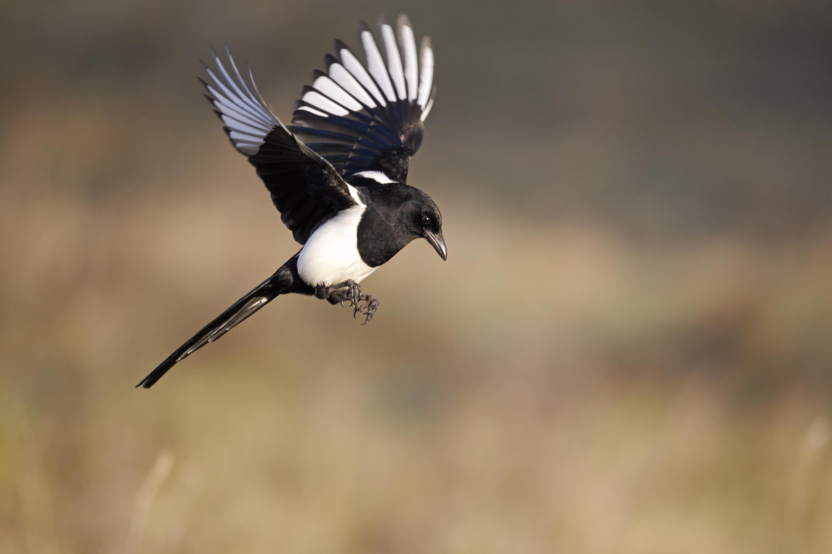 Сорока обыкновенная в полете