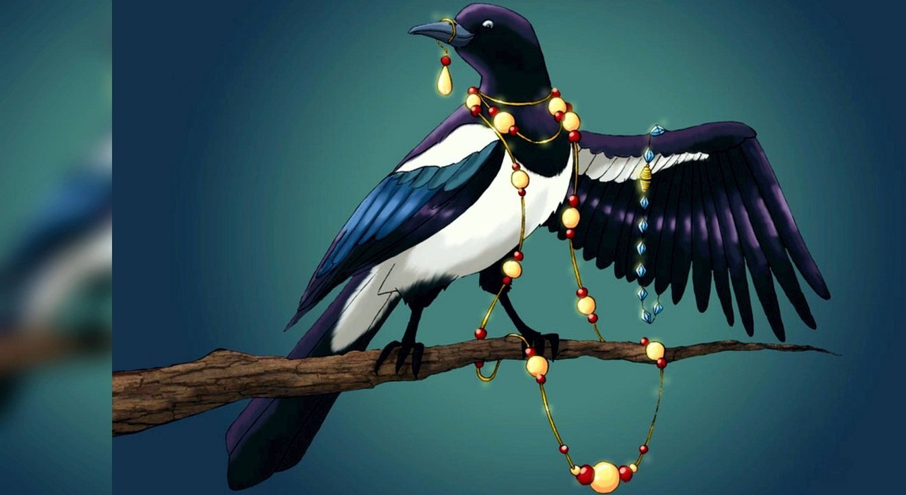 Сорока тащит украшения