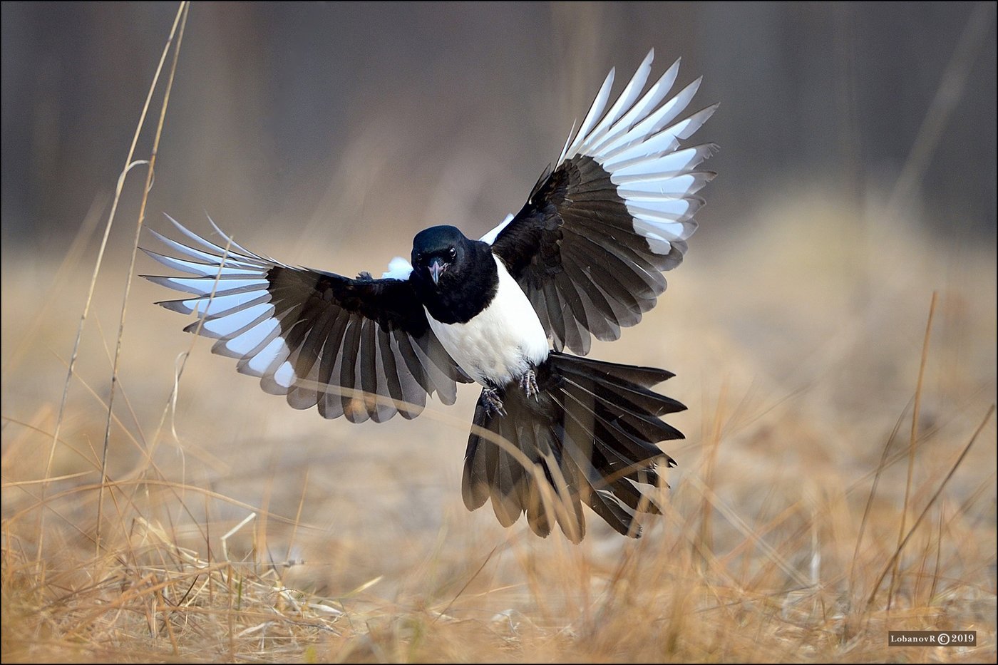 Сорока-белобока в полете
