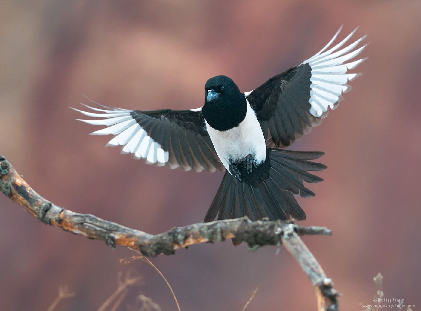 Сорока с распахнутыми крыльями