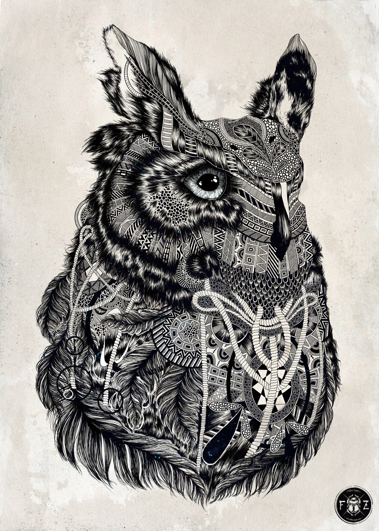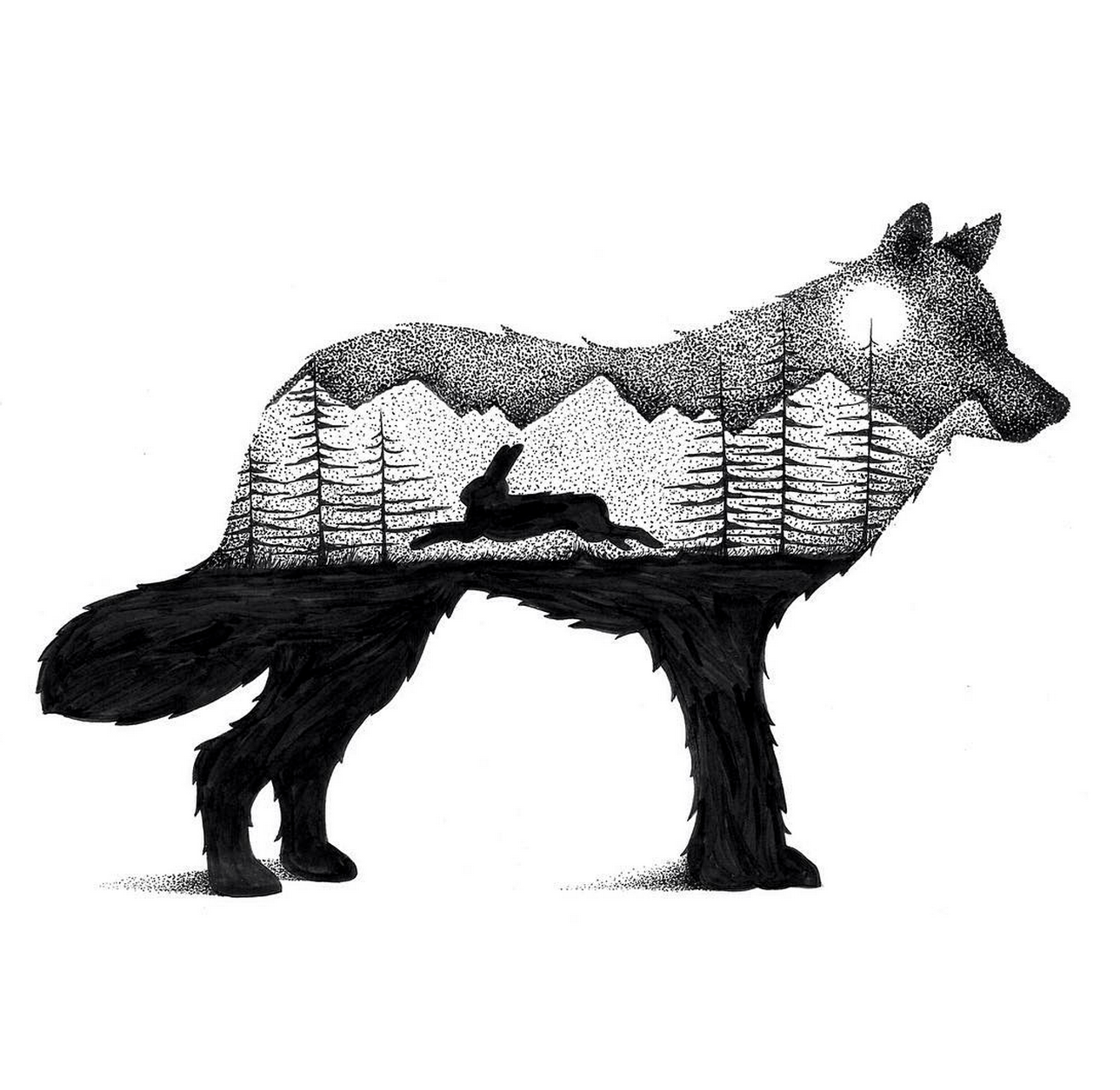 Графика тушью животные