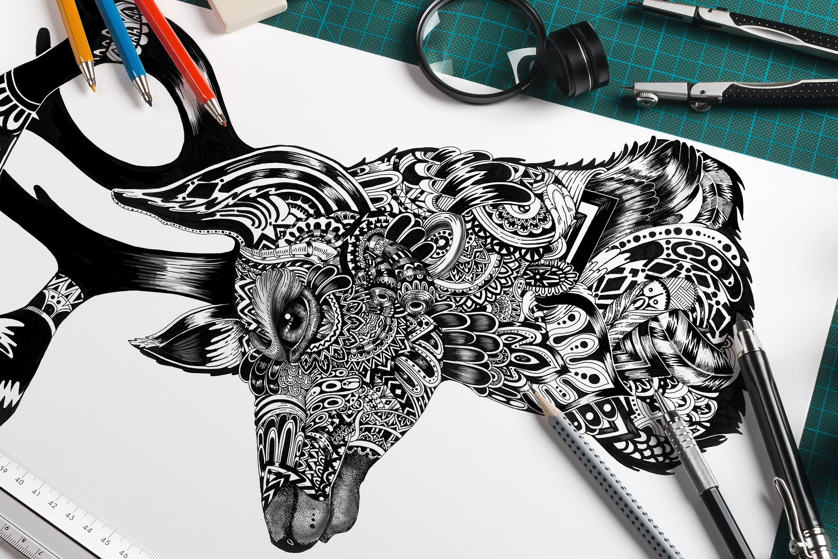 Животные абстракция карандашом