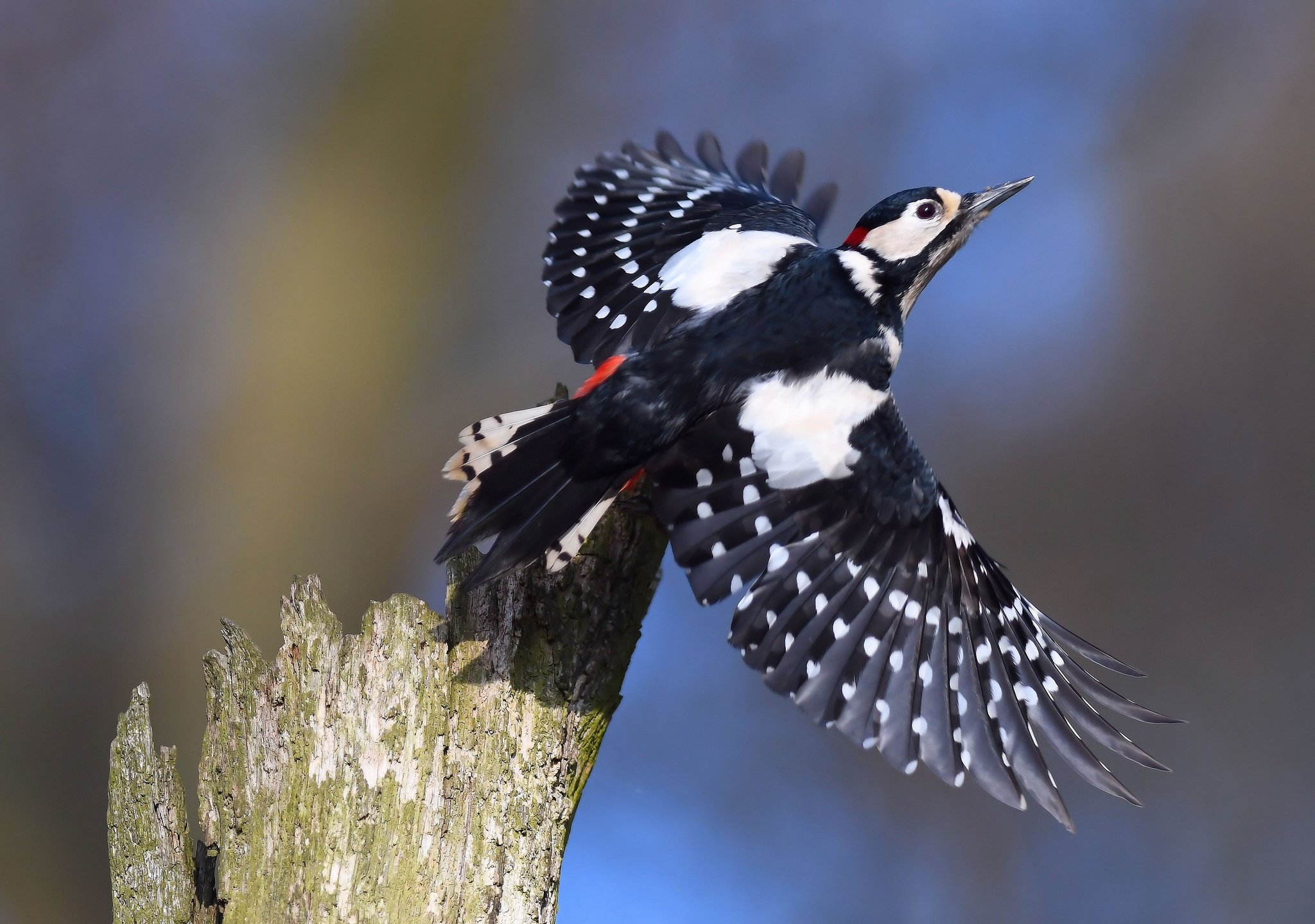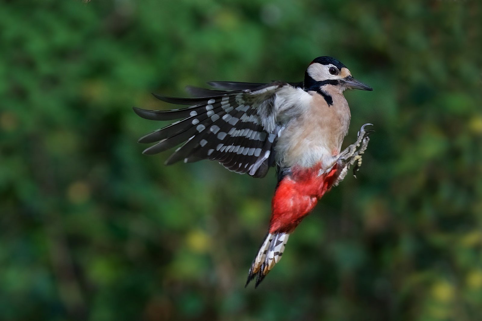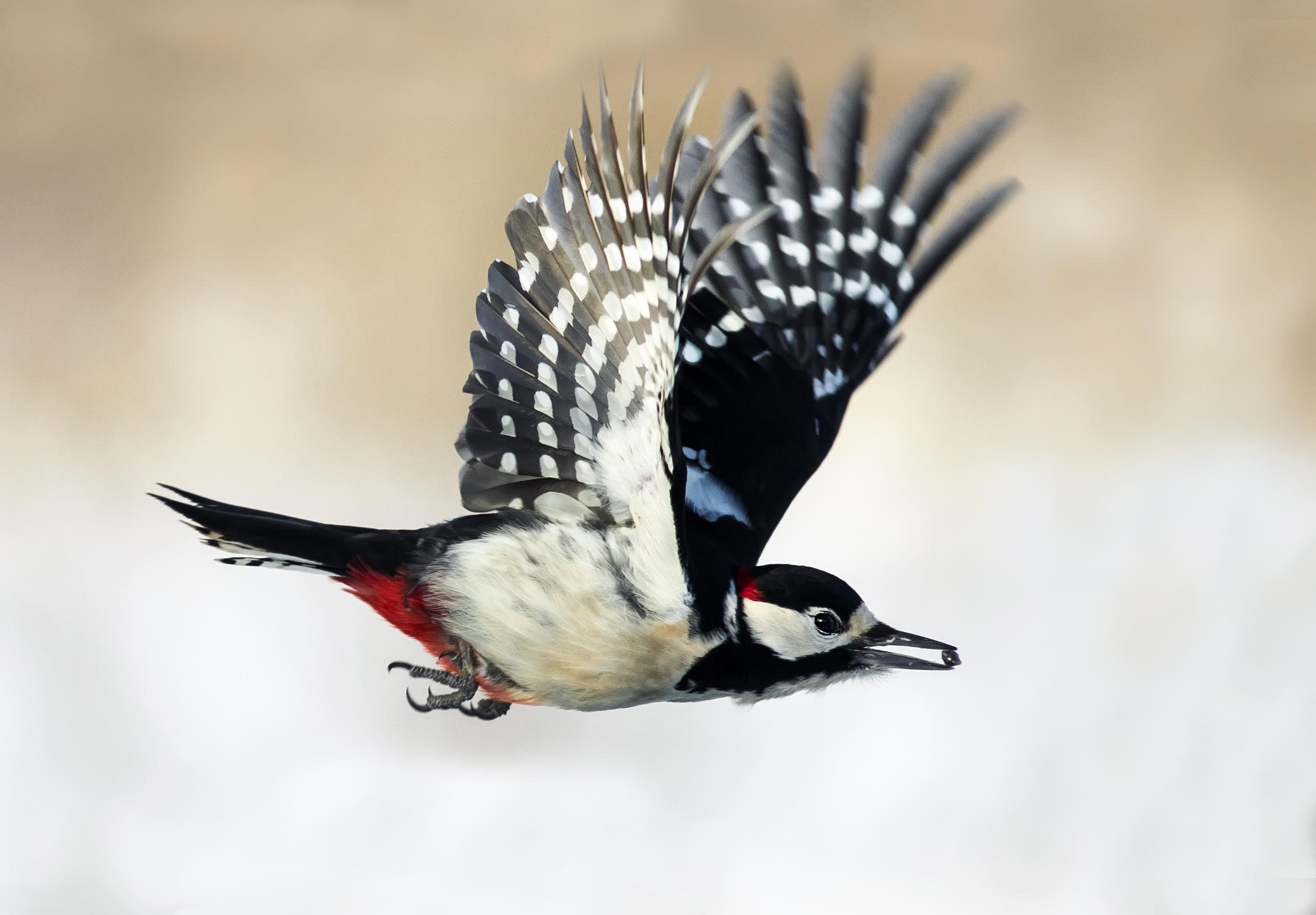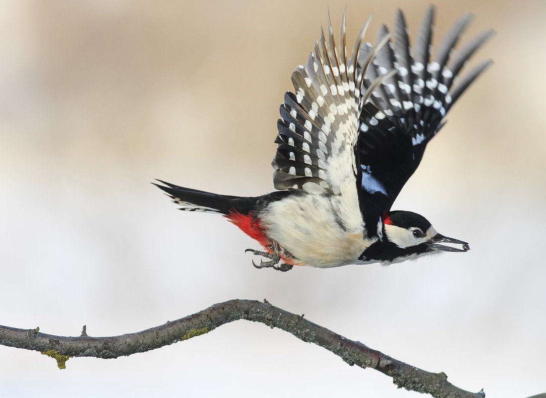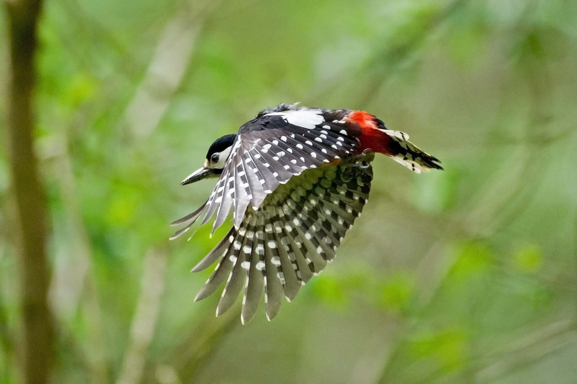 Большой пестрый дятел в полете